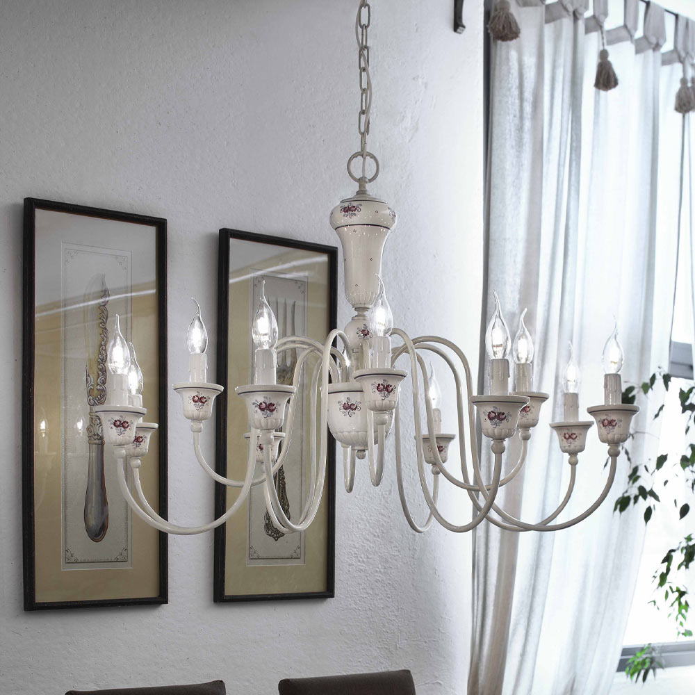 Tento 12 světelný lustr je celý ručně vyrobený z malované mosazi a keramiky s ručně malovanou květinovou výzdobou, vyzdvihnout řemeslnou zručnost a manuální zručnost řemeslníků.