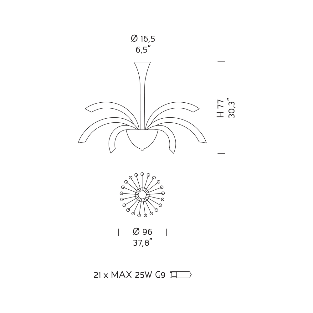 Žárovky (nejsou součástí balení) : 21 x MAX 25W G9