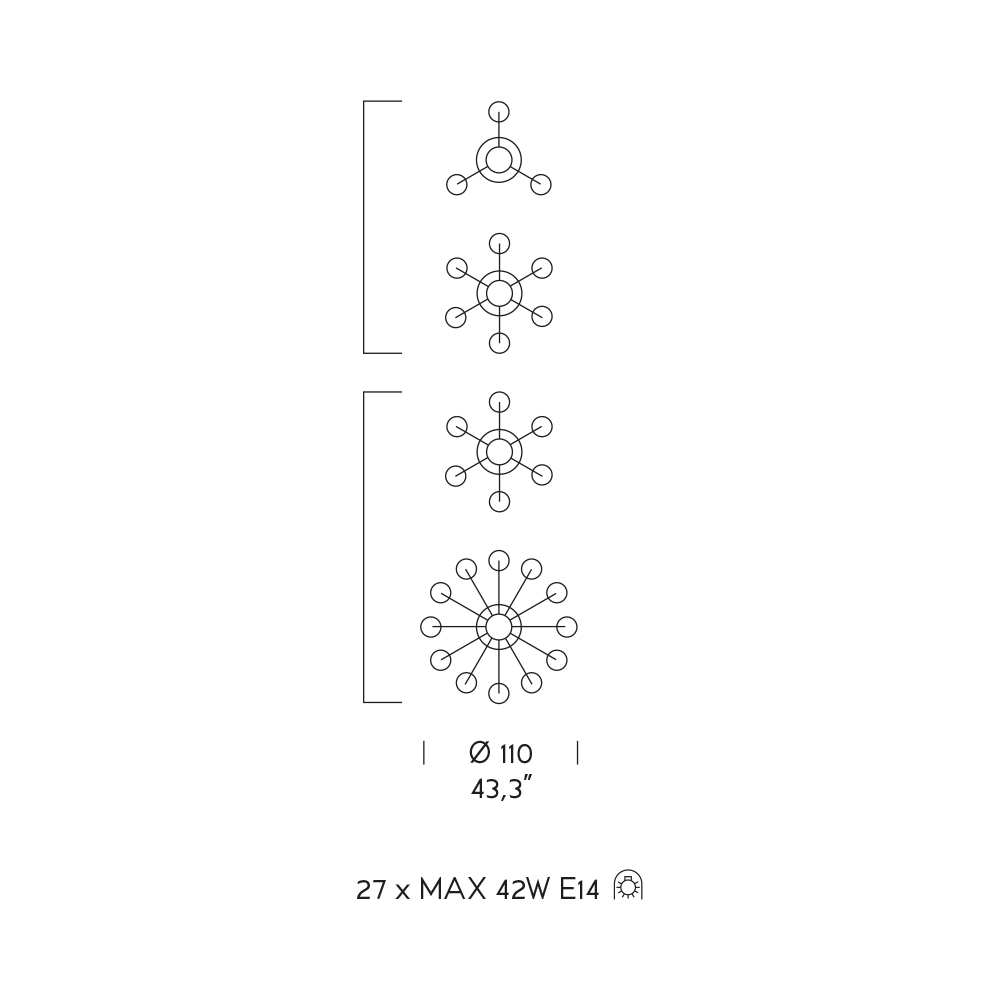 Žárovky (nejsou součástí balení) : 27 x MAX 42W E14
