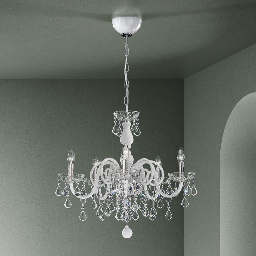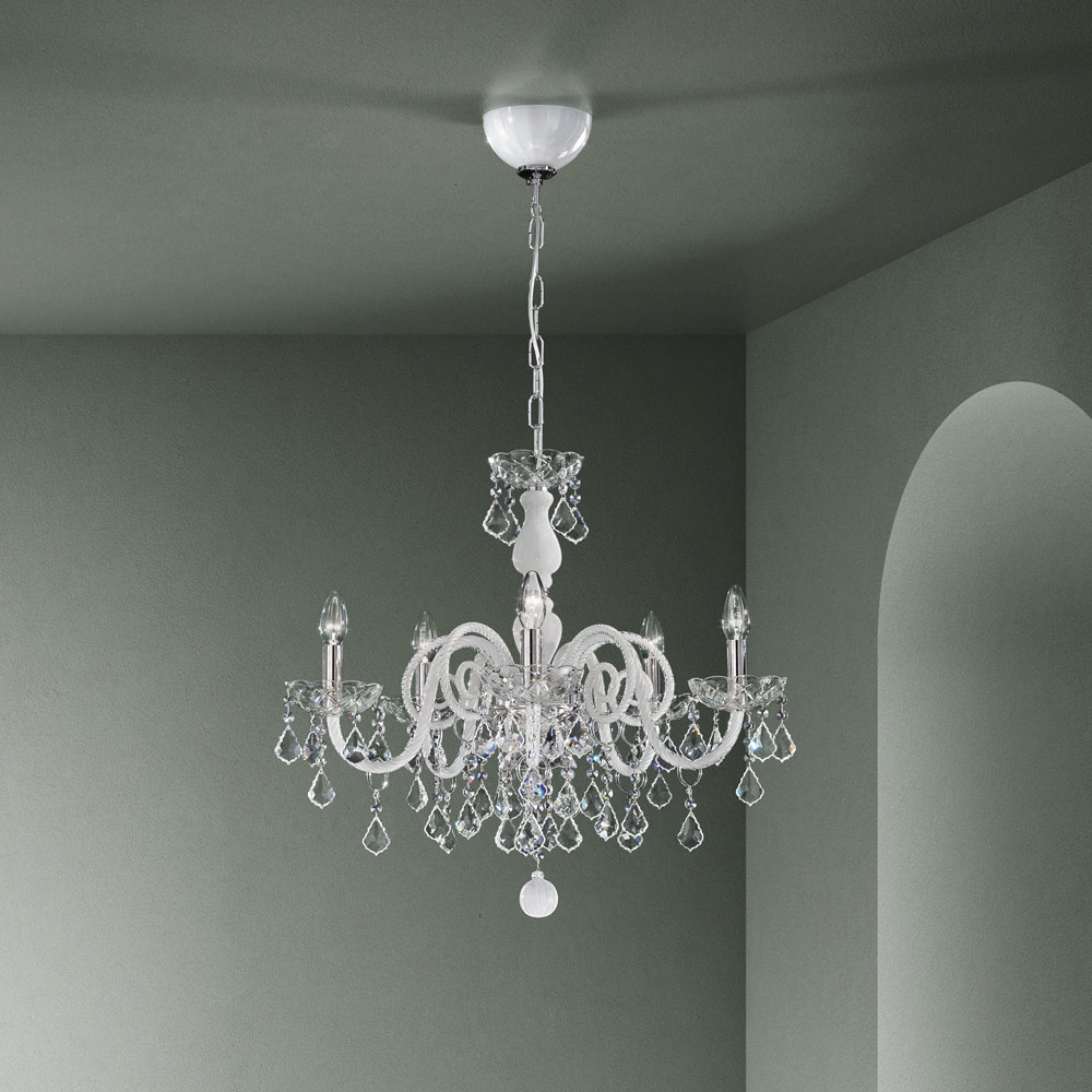 Lustr s 5 světly z ručně vyráběného benátského skla.
