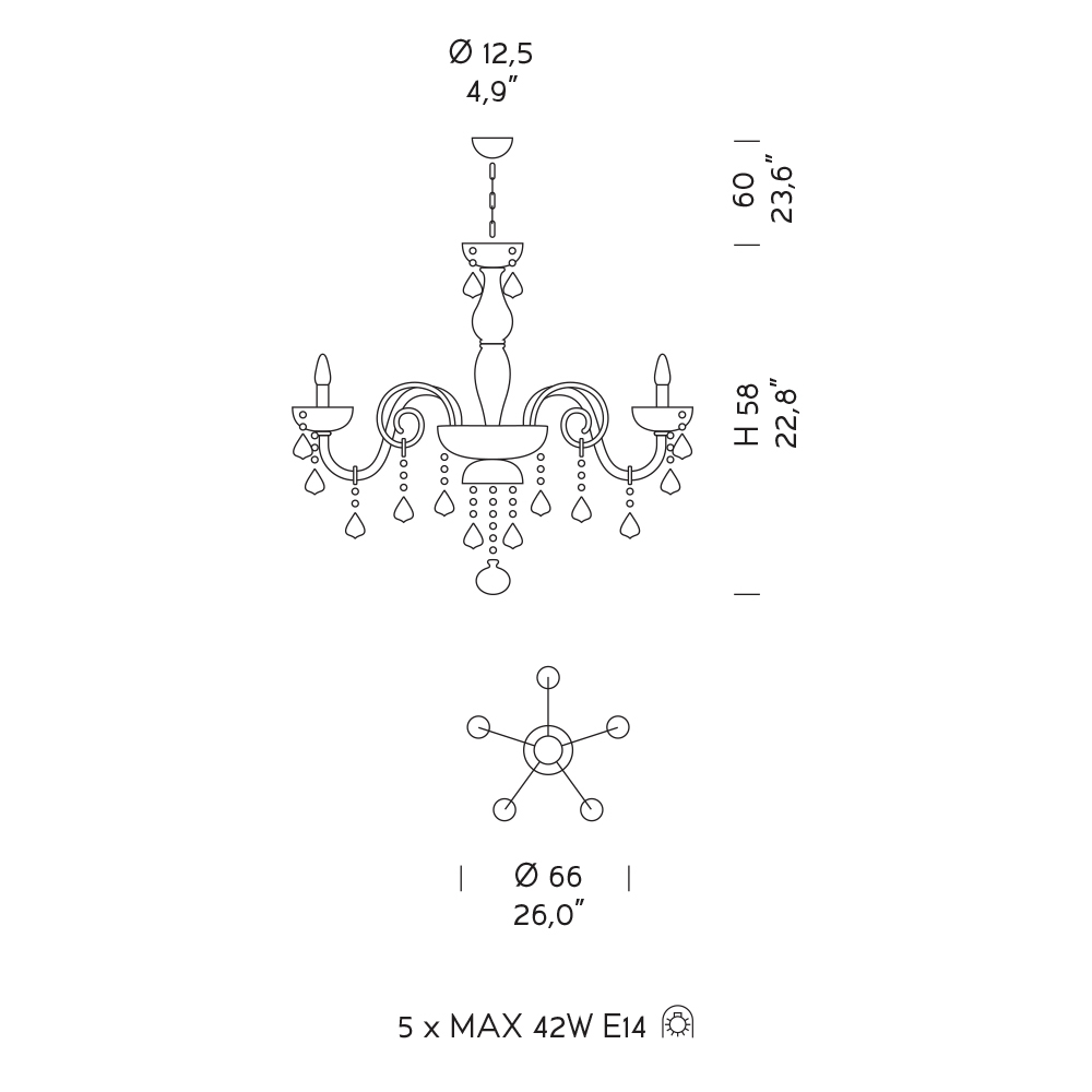 Žárovky (nejsou součástí balení) : 5 x MAX 42W E14