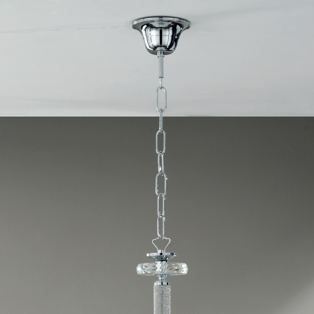 Design uzavírají detaily prstenu s kapkami z optického krystalu a chromované kovové povrchy , díky nimž je doplněk schopen vytvořit luxusní a důležitou atmosféru .