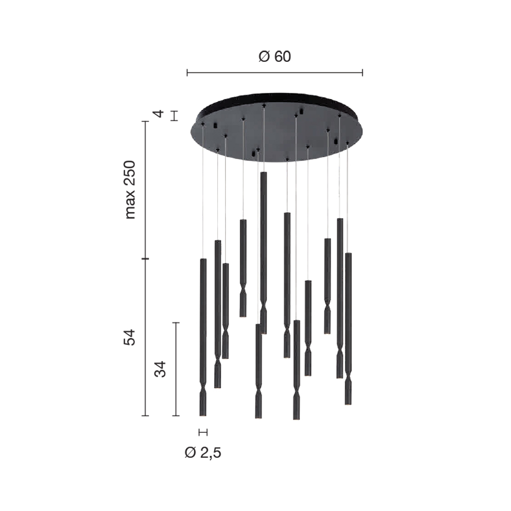 - 6 malých světel: průměr 2,5 x výška 34 cm