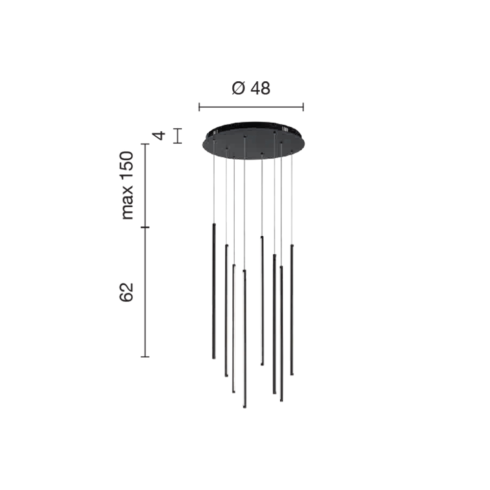 - základna ve stropě: Průměr 48 cm x Výška 4 cm