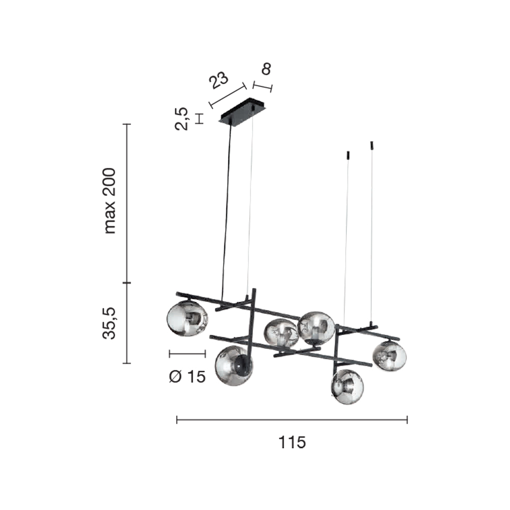 Lustr s LED světlem z lakovaného kovu a foukaného skla Made in Italy