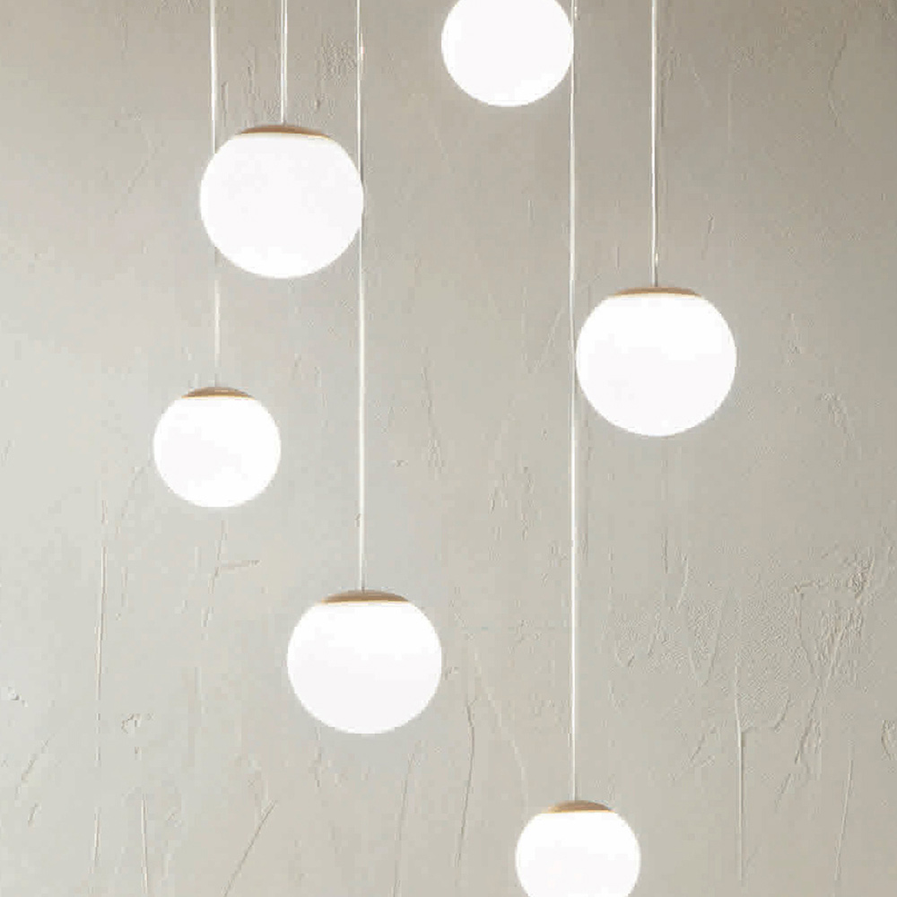 volitelným stínidlem z barevného skla , které lze vyjmout odšroubováním skleněné koule.