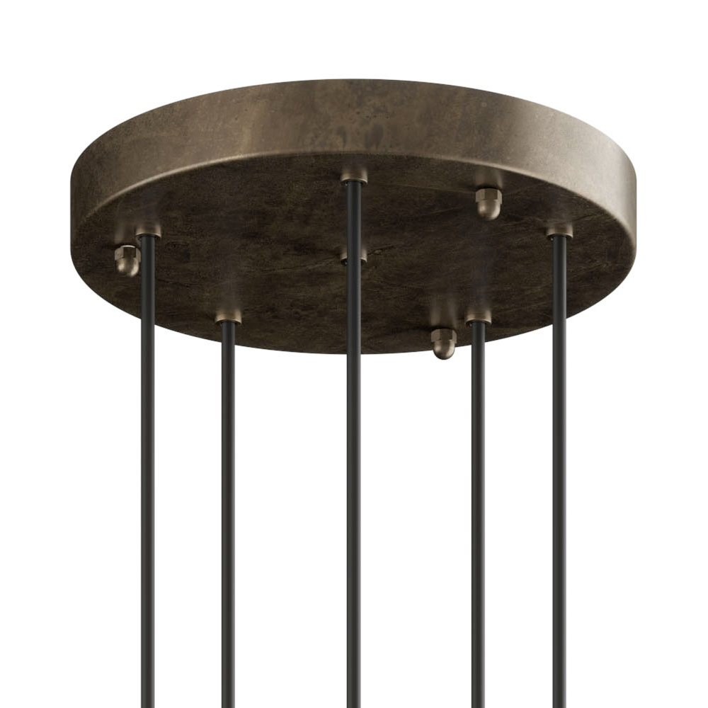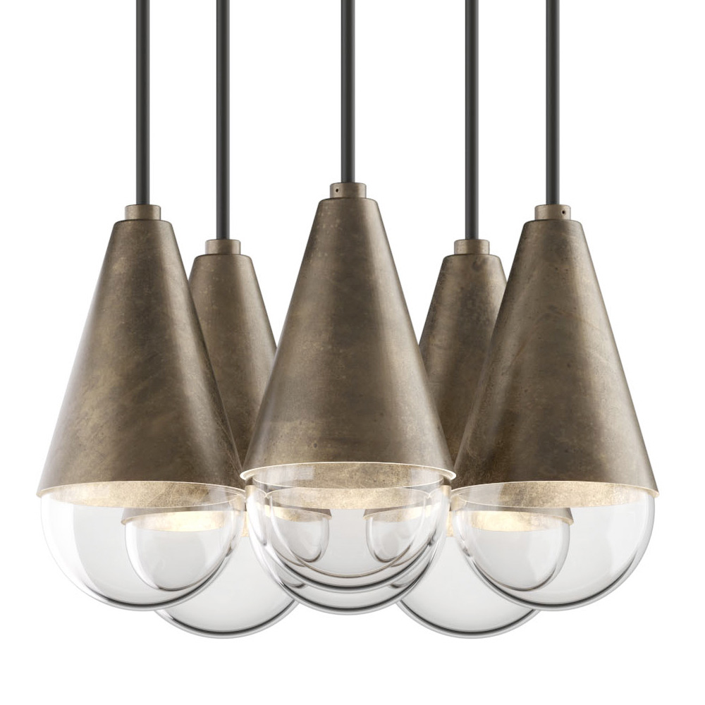 Lustr se 6 světly ze starožitného železa a průhledného skla Made in Italy