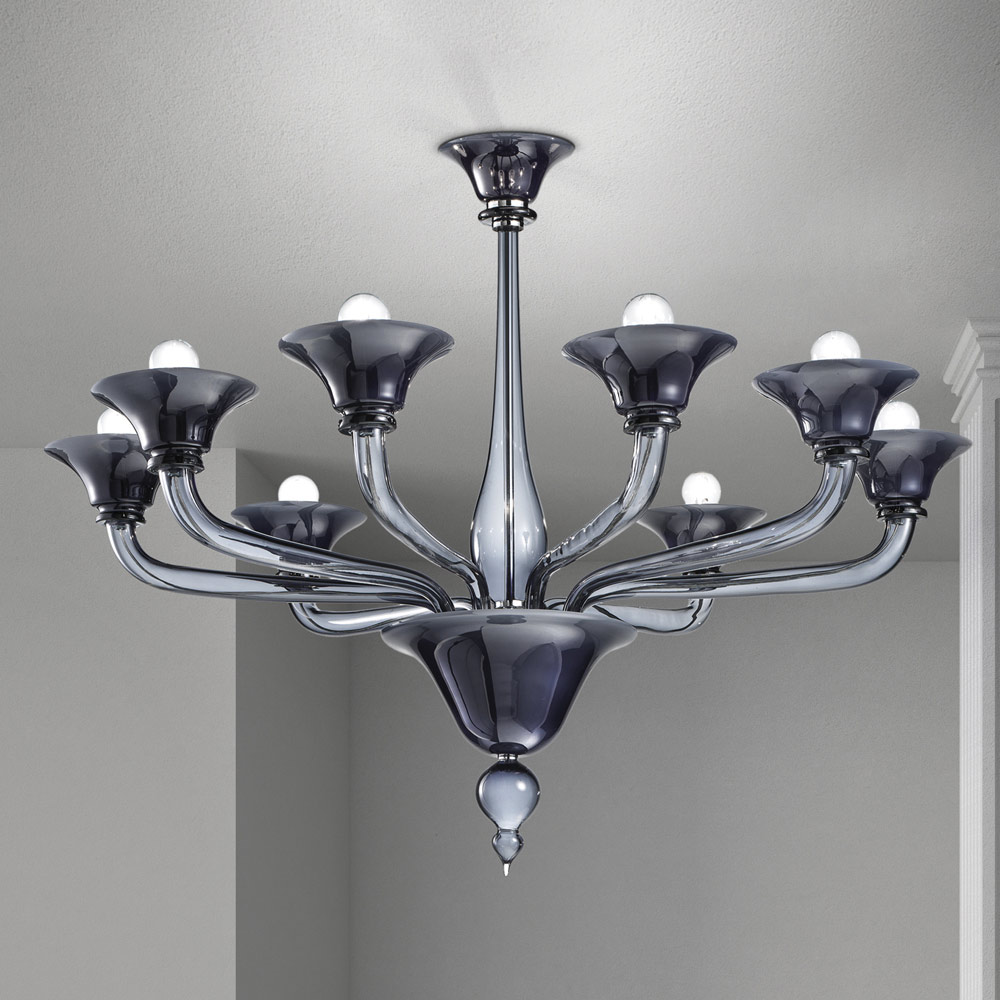 Lustr s 8 světly z benátského skla a kovu Made in Italy.