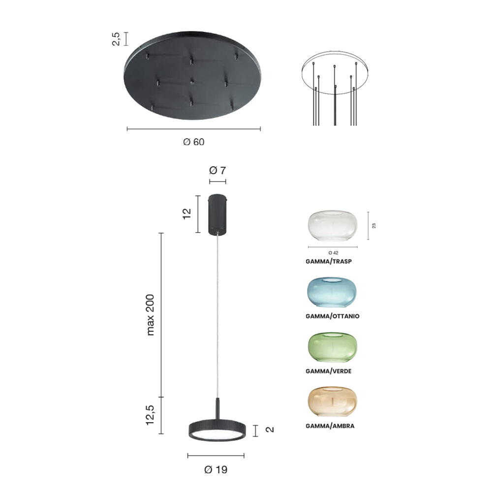 Rozměry:- základna ve stropě: průměr 60 cm x výška 2,5 cm