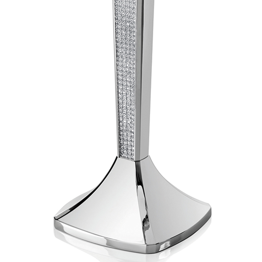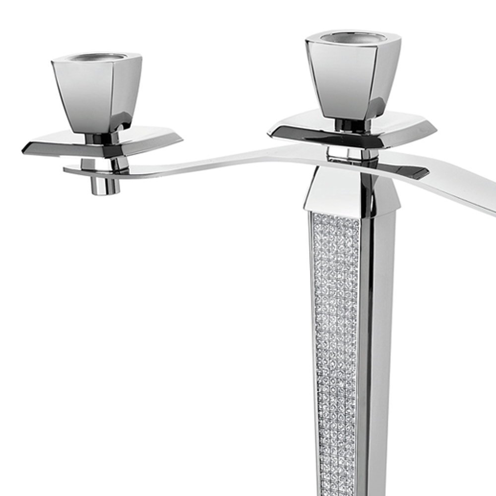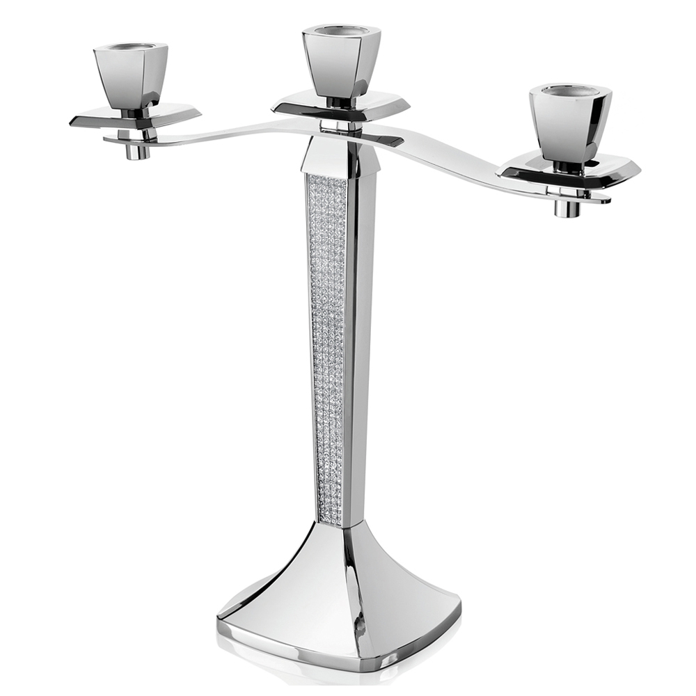 Tento elegantní a luxusní tříplamenný svícen je vyroben výhradně ze stříbrného kovu zdobeného třpytivými ozdobami, které mu dodávají slavný, osobitý a rafinovaný vzhled.