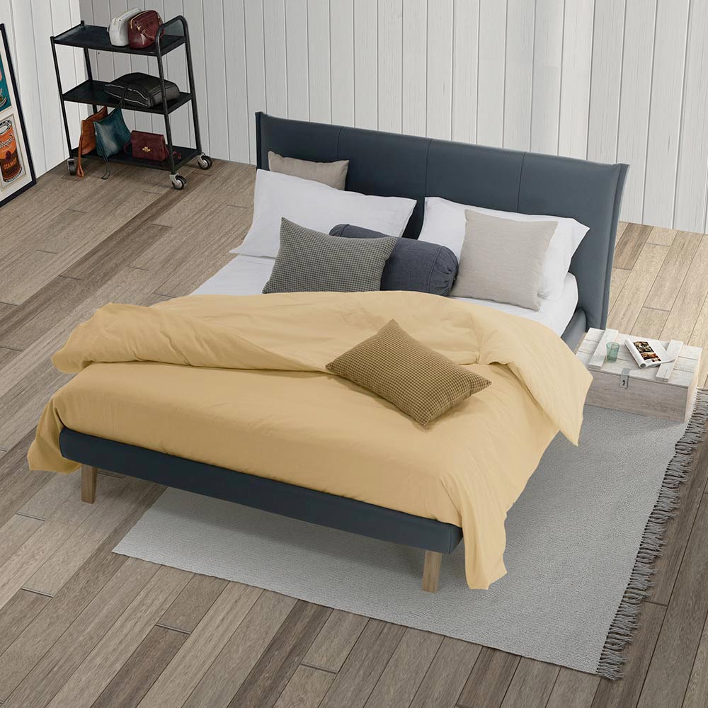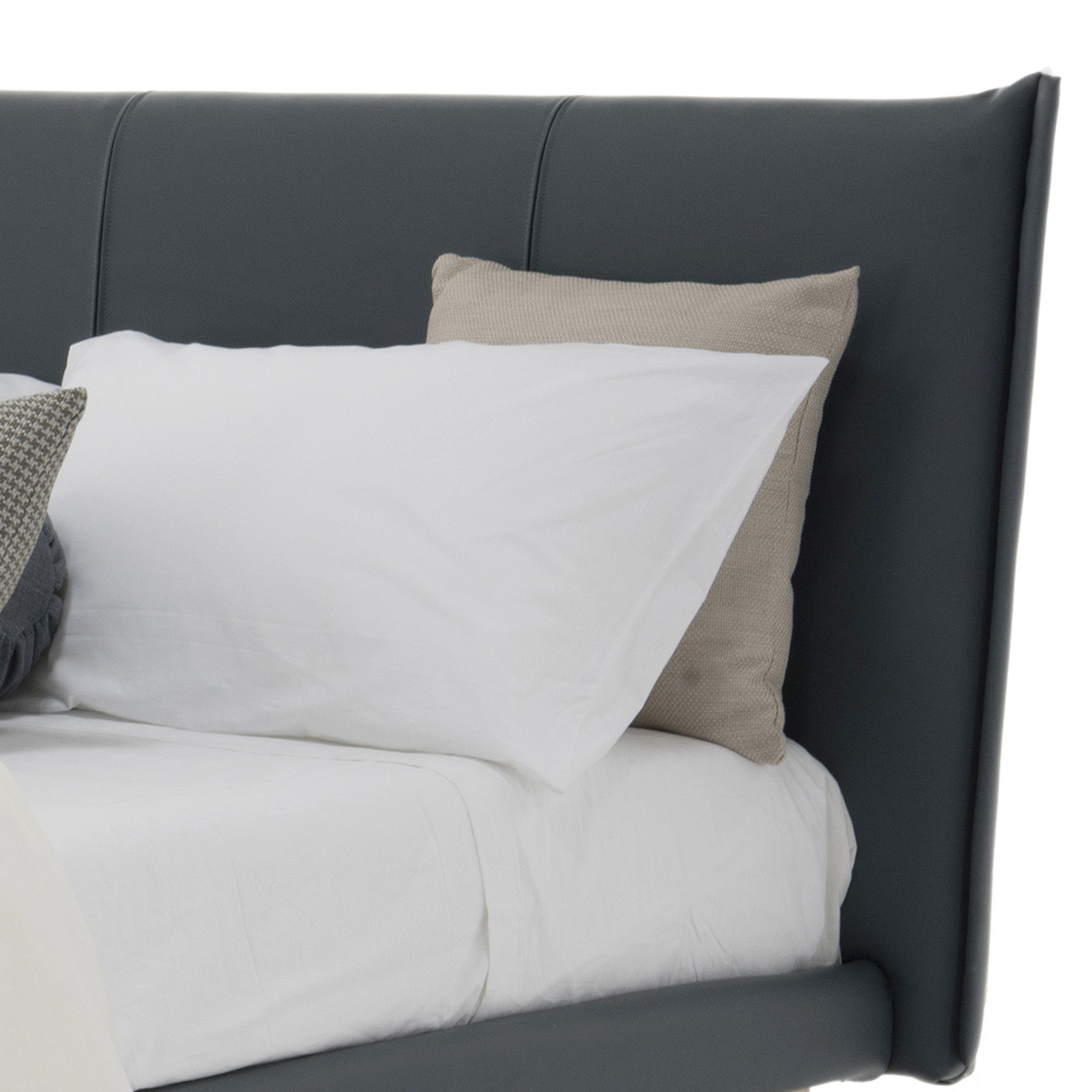 Vysoce kvalitní manželská postel bez polstrovaného kontejneru, ručně vyrobená v Itálii z látky nebo ekokůže.