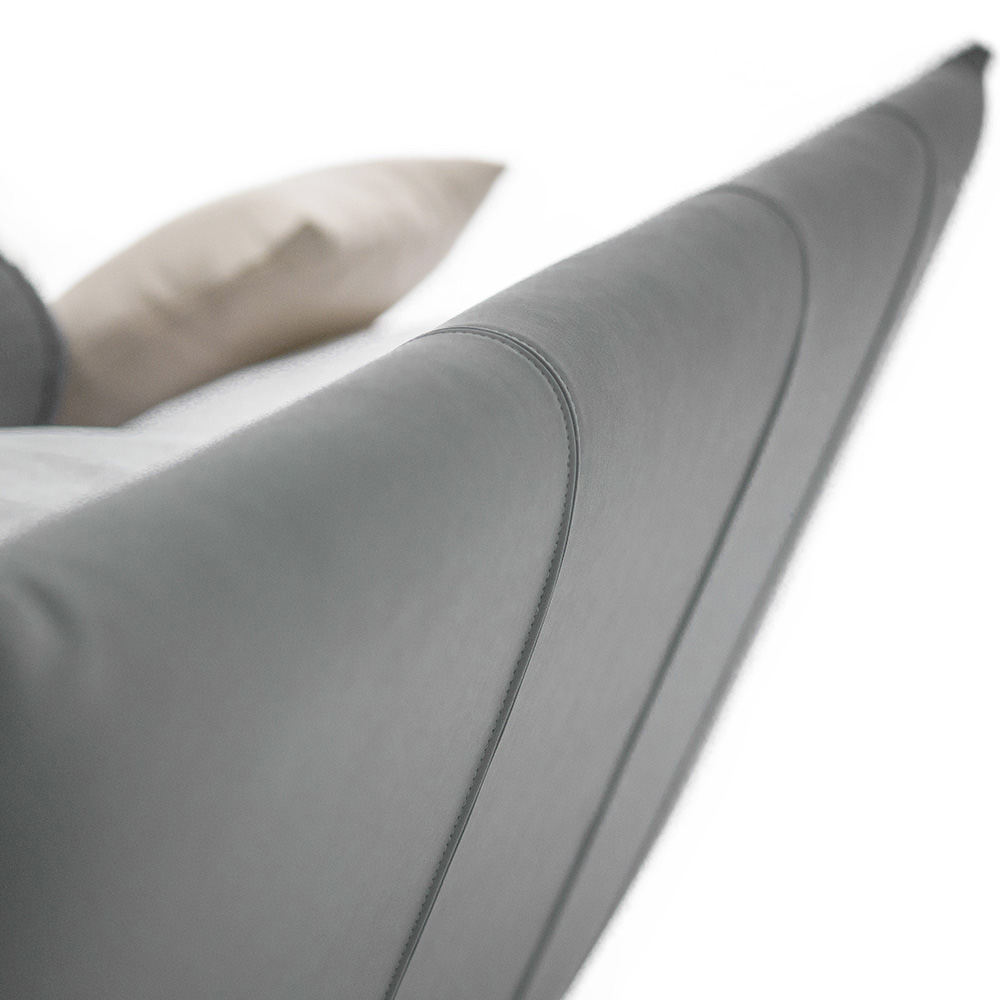 čela postele jsou frapé a uprostřed švy, které mu dodávají objem a měkkost;