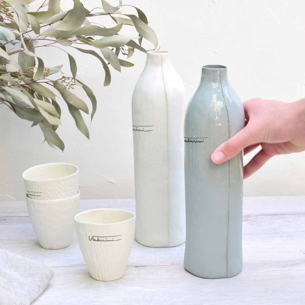 Tyto láhve vyrobené z nejkvalitnějšího bílého nebo šedého porcelánu dodávají stolu eleganci a zdokonalení pro luxusní prostředí ve společnosti, evokují smyslnost a jednoduchost krásy porcelánu, aniž by byla obětována jeho praktičnost.