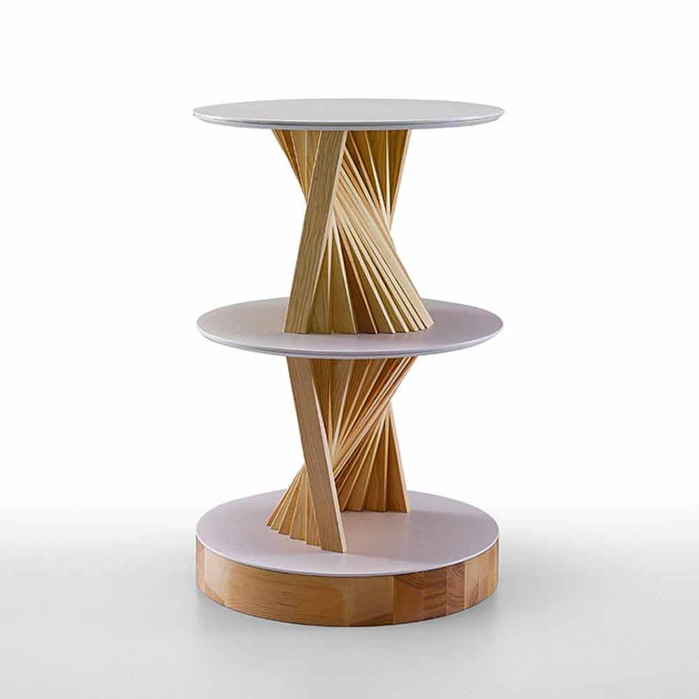 jasanového dřeva v přírodním provedení s kulatými policemi z lesklého nebo matného