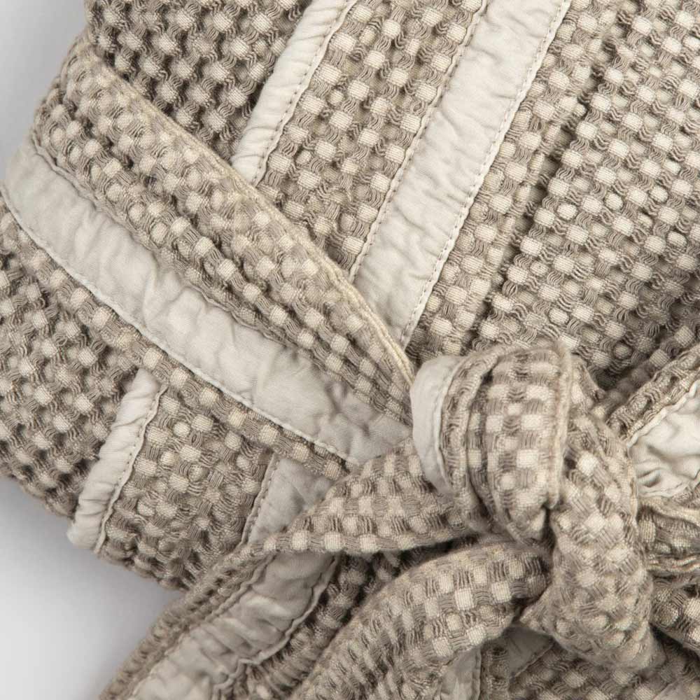 Kimono v lnu a bavlně se zpracováním voštin, rafinovaný luxusní design vyrobený v Itálii.