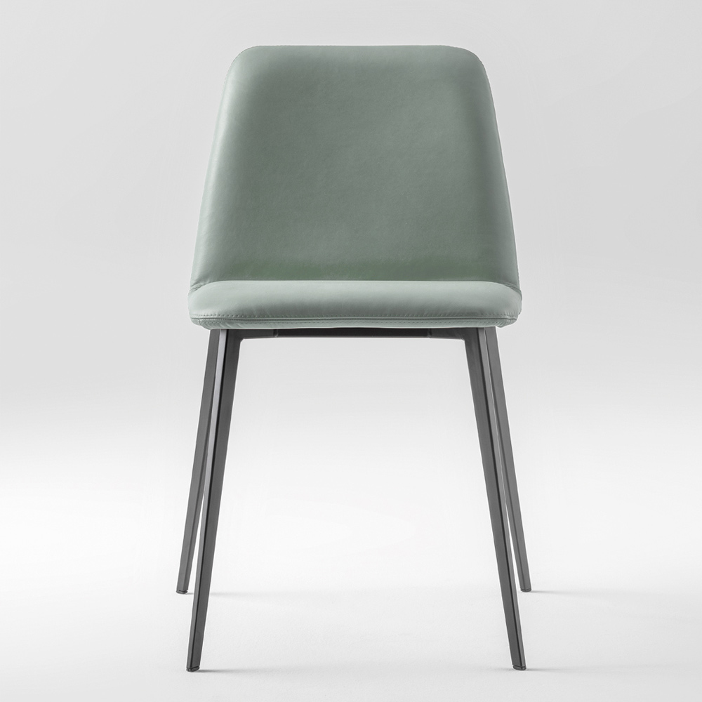 Židle do jídelny nebo kuchyně vyrobená v Itálii s olověnou antracitovou lakovanou kovovou konstrukcí a polstrovaným sedákem potaženým kůží . Jednoduchý a vytříbený styl charakterizuje tuto židli moderními prvky, které čerpají inspiraci z typických návrhů 50. let a vracejí je v současném klíči k vytvoření originálního řešení vybavení. To, co se rodí, je sedadlo, které díky použití kvalitních surovin sladí funkčnost a design a dokáže dokončit vybavení místnosti osobností a elegancí .