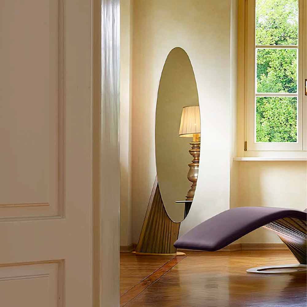 Podlahové zrcadlo se strukturou z jasanového dřeva, vysoce kvalitní Made in Italy.