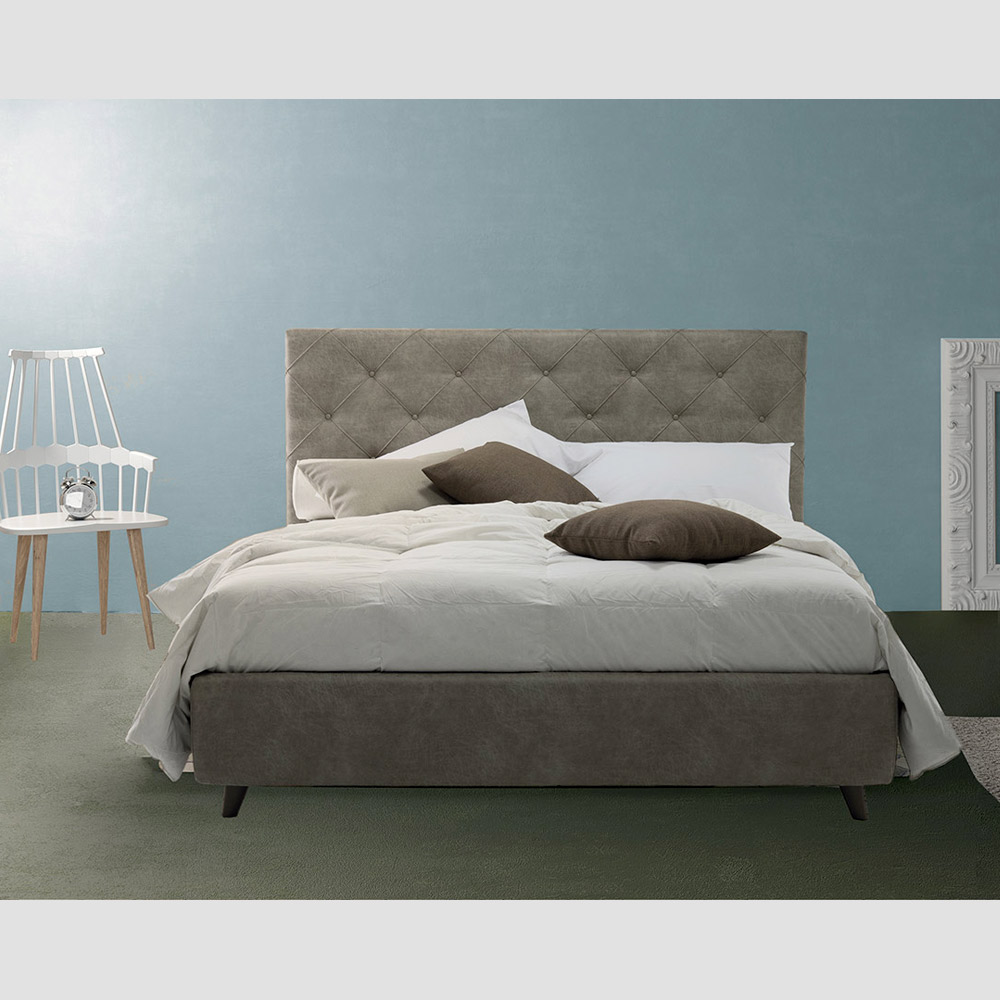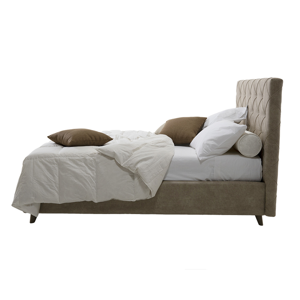 Manželská postel s úložným boxem z vysoce kvalitní látky nebo ekokůže, ručně vyráběná v Itálii.