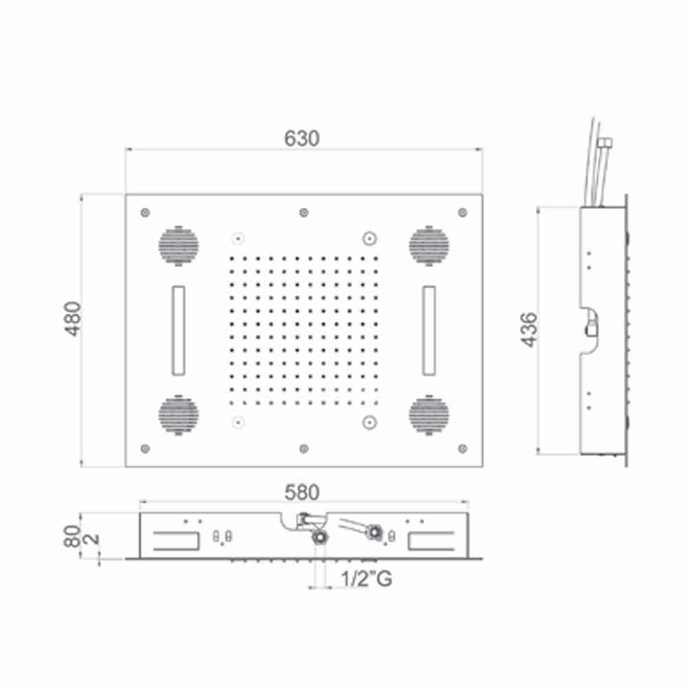 Vlastnosti:- Obdélníková sprchová hlavice z nerezové oceli s úpravou proti vápenci