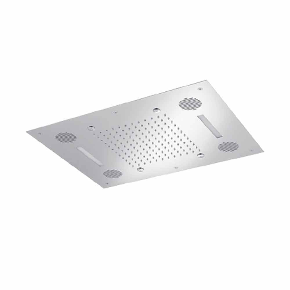 Nerezová sprchová hlavice s chromoterapií a rádiovým přístupem, luxusní výrobek Made in Italy.