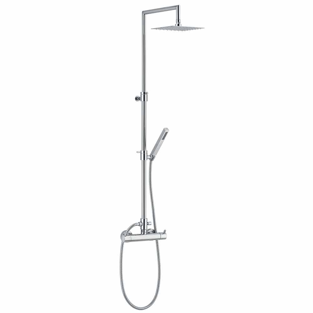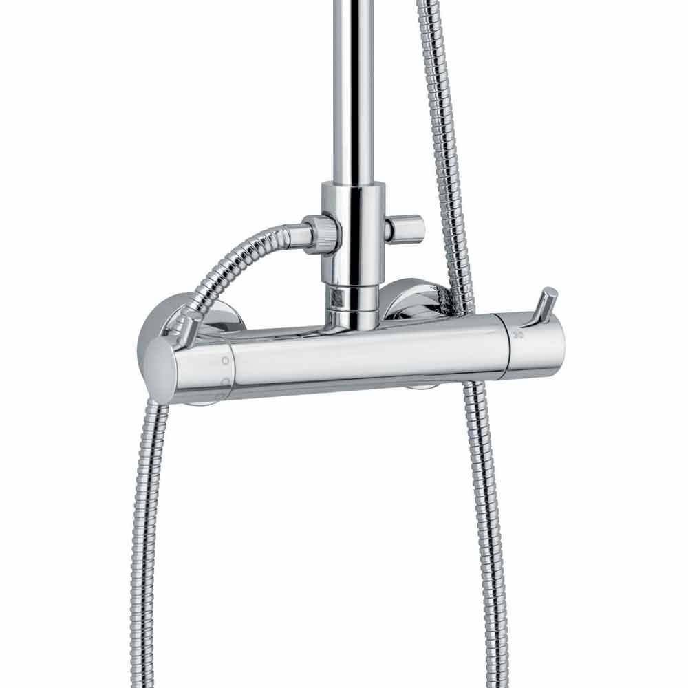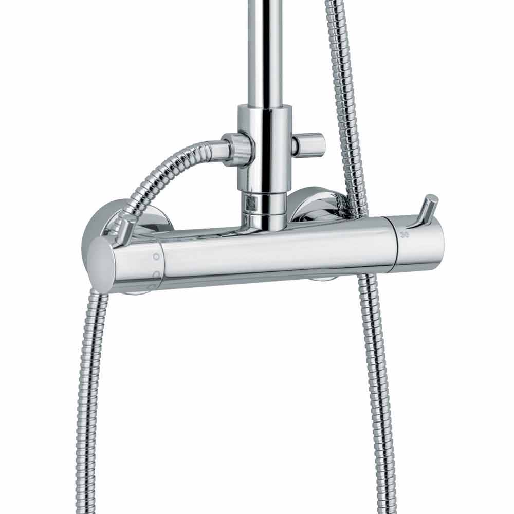 Moderní sprchový sloup z chromované mosazi s termostatickou baterií Made in Italy.