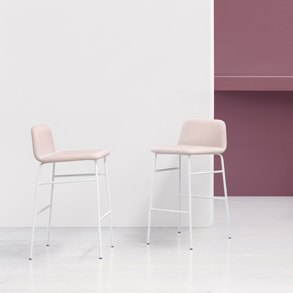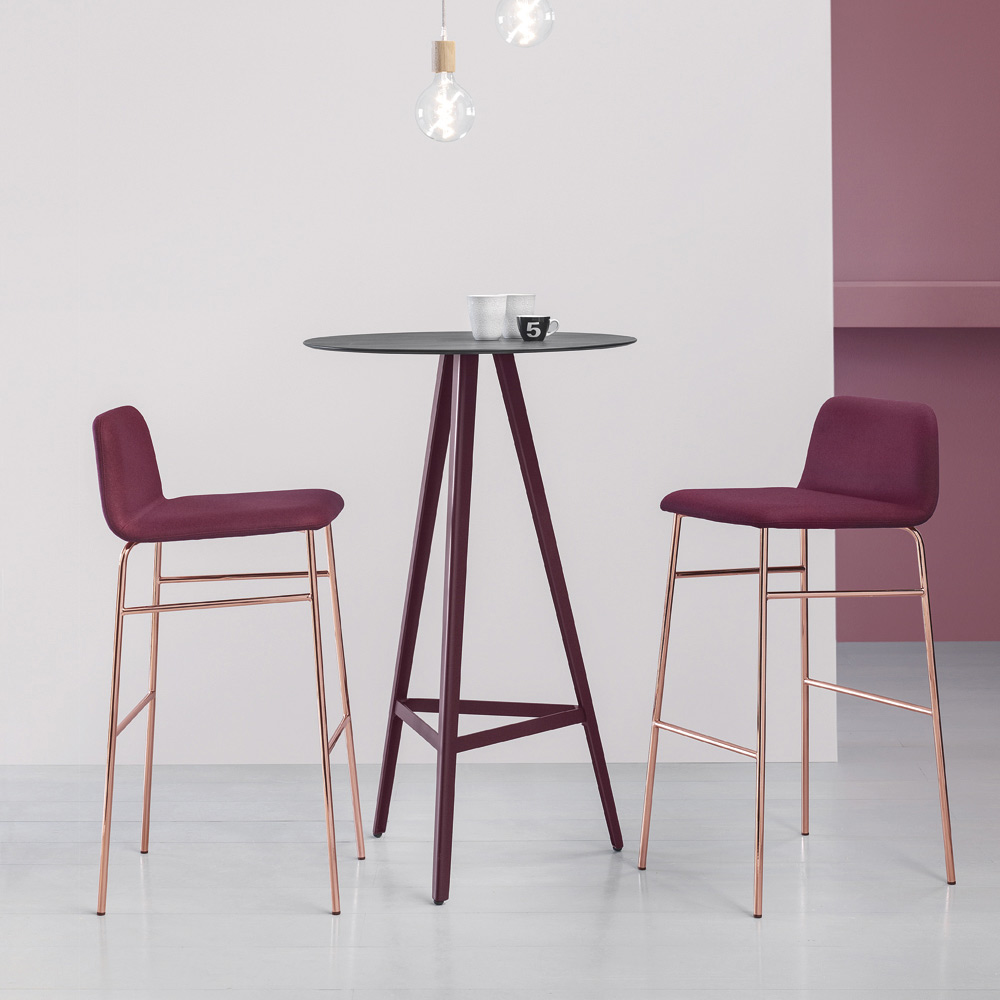 Vysoká stolička vyrobená v Itálii s lakovanou kovovou konstrukcí a čalouněnou skořápkou potaženou látkou . Postavy tohoto doplňku procházejí jednoduchými liniemi se současnou duší navrženou a vytvořenou pro ty, kteří hledají minimální řešení, aniž by se museli vzdát originálního a moderního designu. To, co se rodí, je sedadlo, které díky použití kvalitních surovin sladí funkčnost a styl a dokáže dovybavit místnost jedinečnou osobností a konkrétní elegancí.