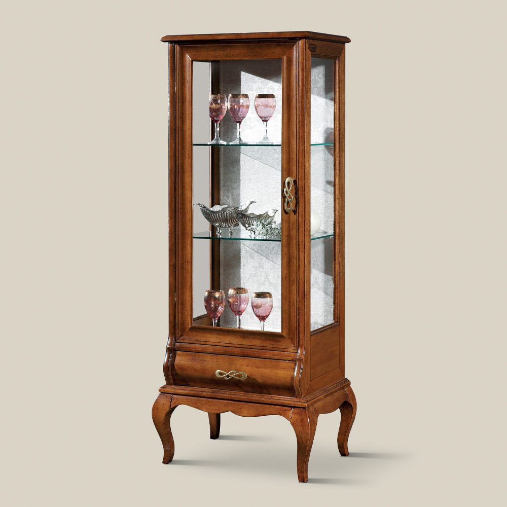 Klasická vitrína s dvířky a zásuvkou z bílého dřeva Made in Italy.