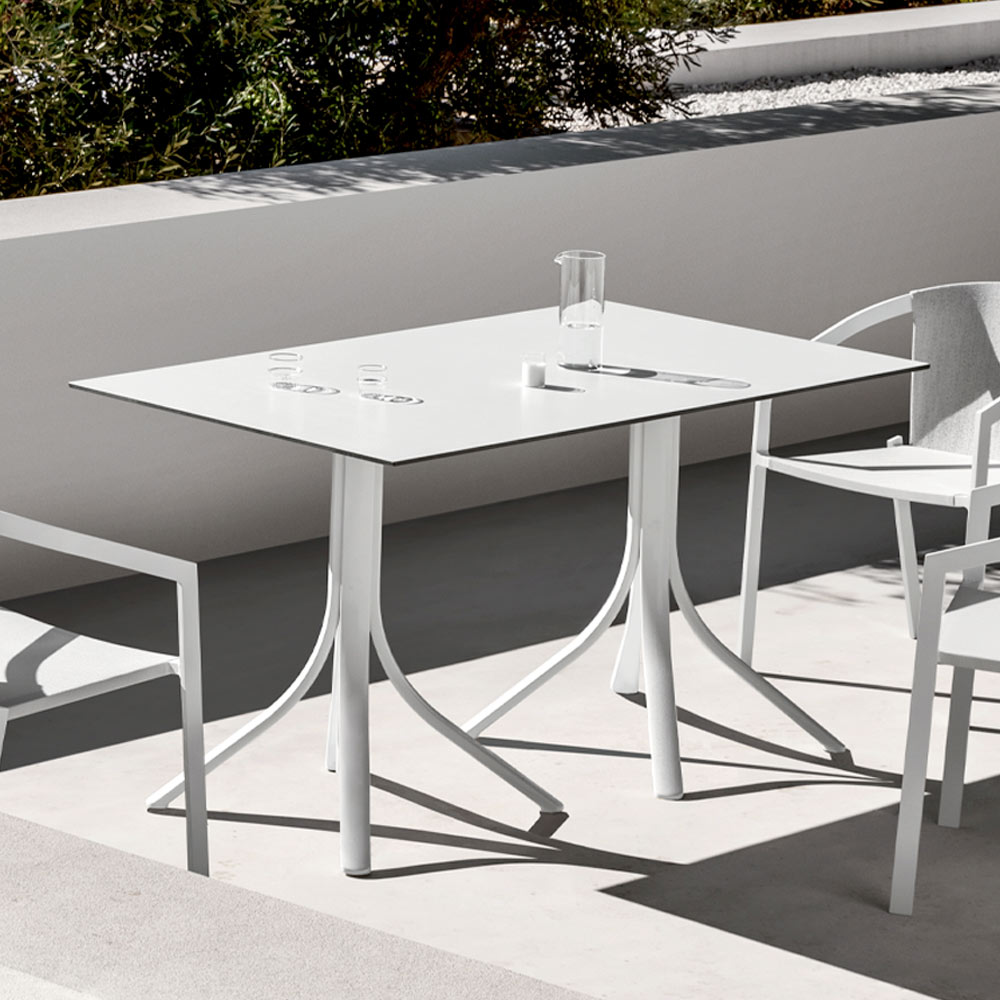 Venkovní stůl s obdélníkovým designem z hliníku a vrchní částí HPL ve 2 povrchových úpravách, vysoce kvalitní výrobek vyrobený v Itálii.