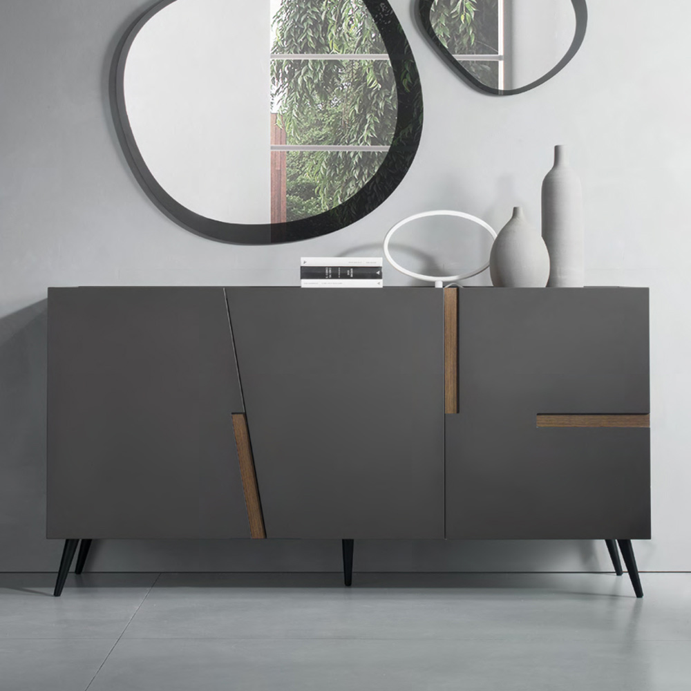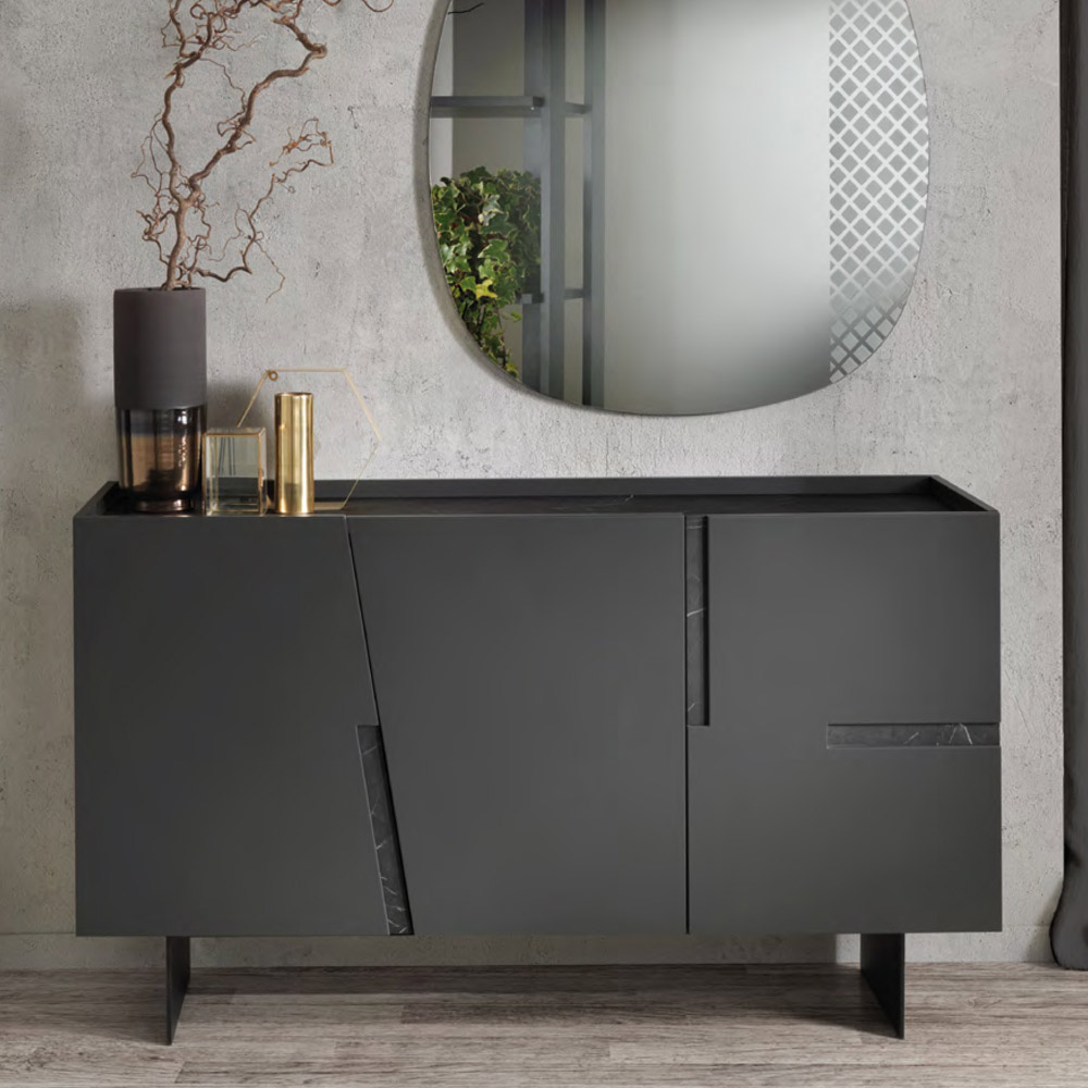 Příborník do obývacího pokoje z melaminu s vložkami z lamina nebo zrcadla Made in Italy.