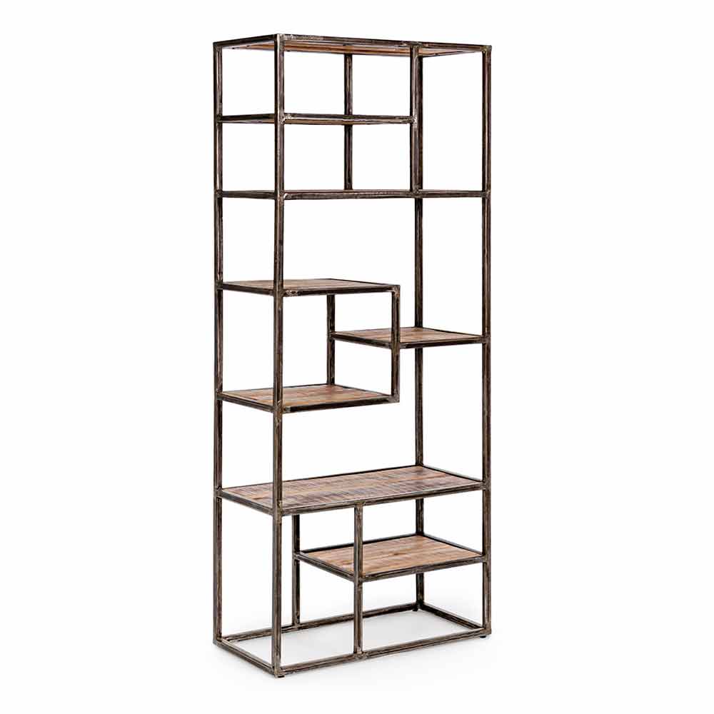 Malovaná ocelová a dřevěná knihovna Homemotion v průmyslovém stylu - Zompo
