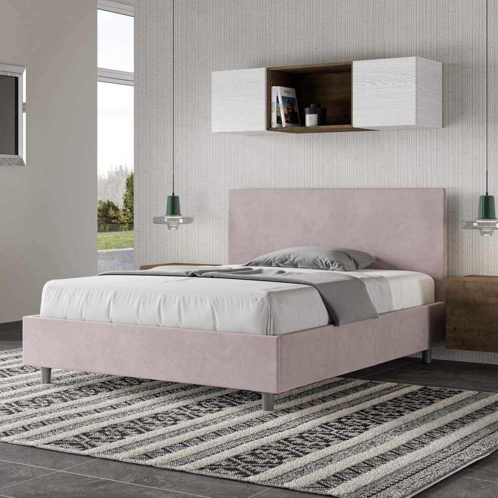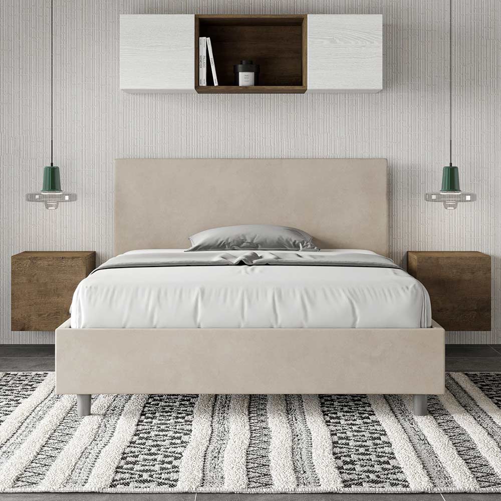 Francouzská postel 140x200 cm s čalouněním z melaminových panelů a potahem z mikrovlákna , kompletně vyrobená v Itálii. Tato francouzská postel má polstrovaný rám a je ikonou decentního, ale elegantního stylu. Díky čelu z mikrovlákna se tato postel bez problémů začlení do jakéhokoli prostoru a dodá jí osobitý nádech noblesy a luxusu, typicky italského charakteru. Údržba je snadná: stačí ji otřít hadříkem z mikrovlákna, aby si zachovala svou krásu po dlouhou dobu.