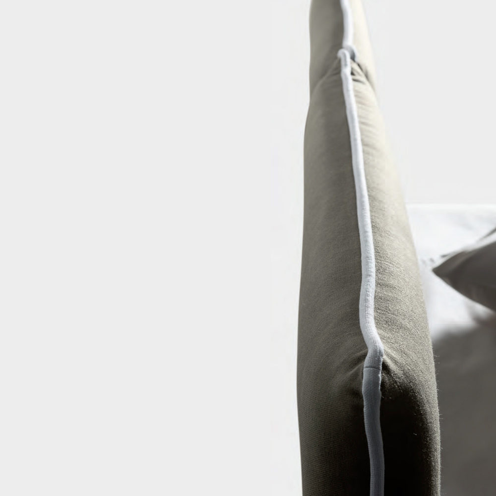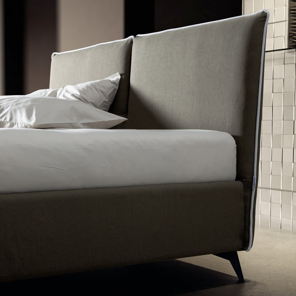 vodoodpudivé látky ; Čelo postele, centrálně dělené a charakterizované zvláštní povrchovou úpravou s kontrastní šňůrkou, dodává tomuto modelu podmanivý a jedinečný vzhled.