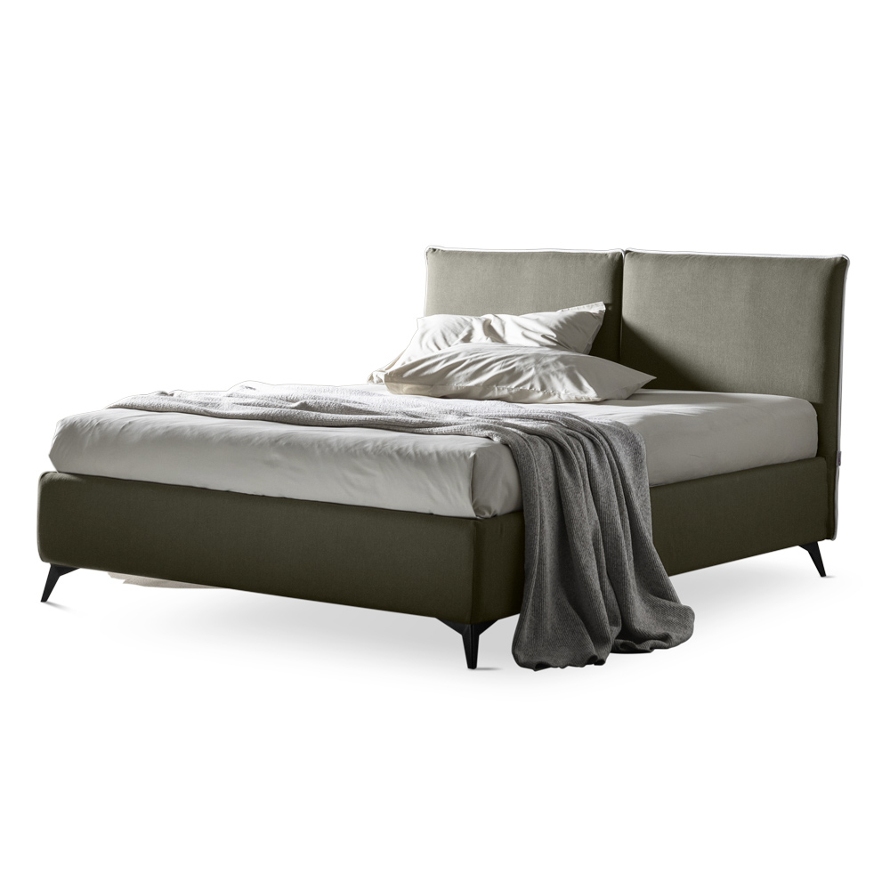úložným boxem, kovovými nohami v antracitové úpravě (výška 13,5 cm) a měkkým čelem získaným díky speciálnímu polstrování s tvarem polštáře z
