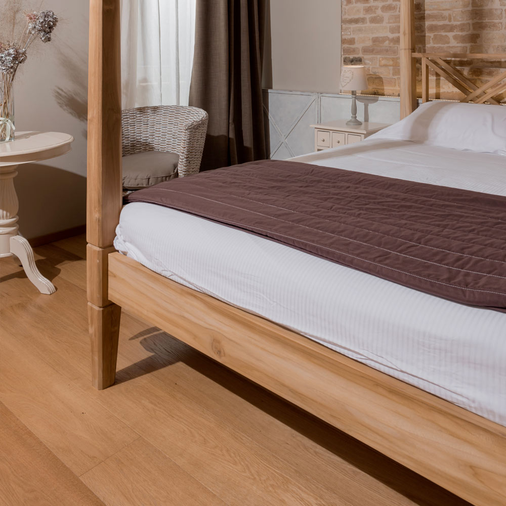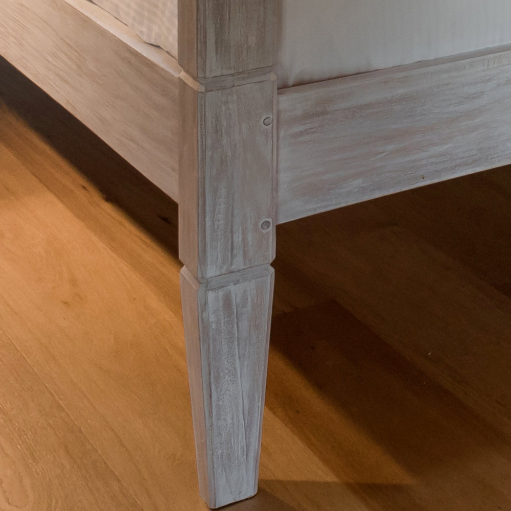 Postel je ručně vyrobena z přirozeně sušeného dřeva, což je živý materiál, který se v průběhu času přirozeně pohybuje. Jakékoli zadrhnutí nebo malé praskliny jsou pro dřevo vlastní a mohou se časem objevit i jinak.