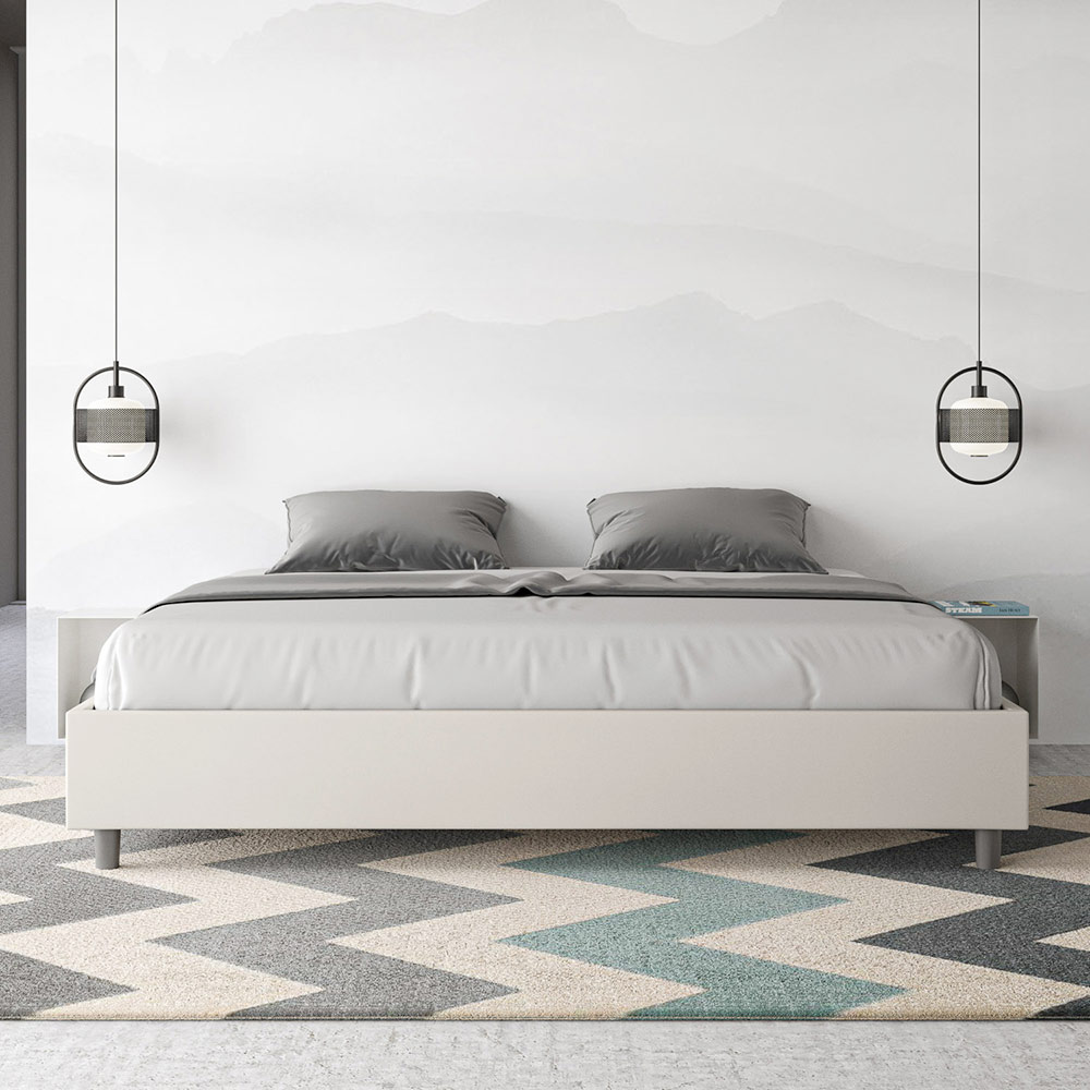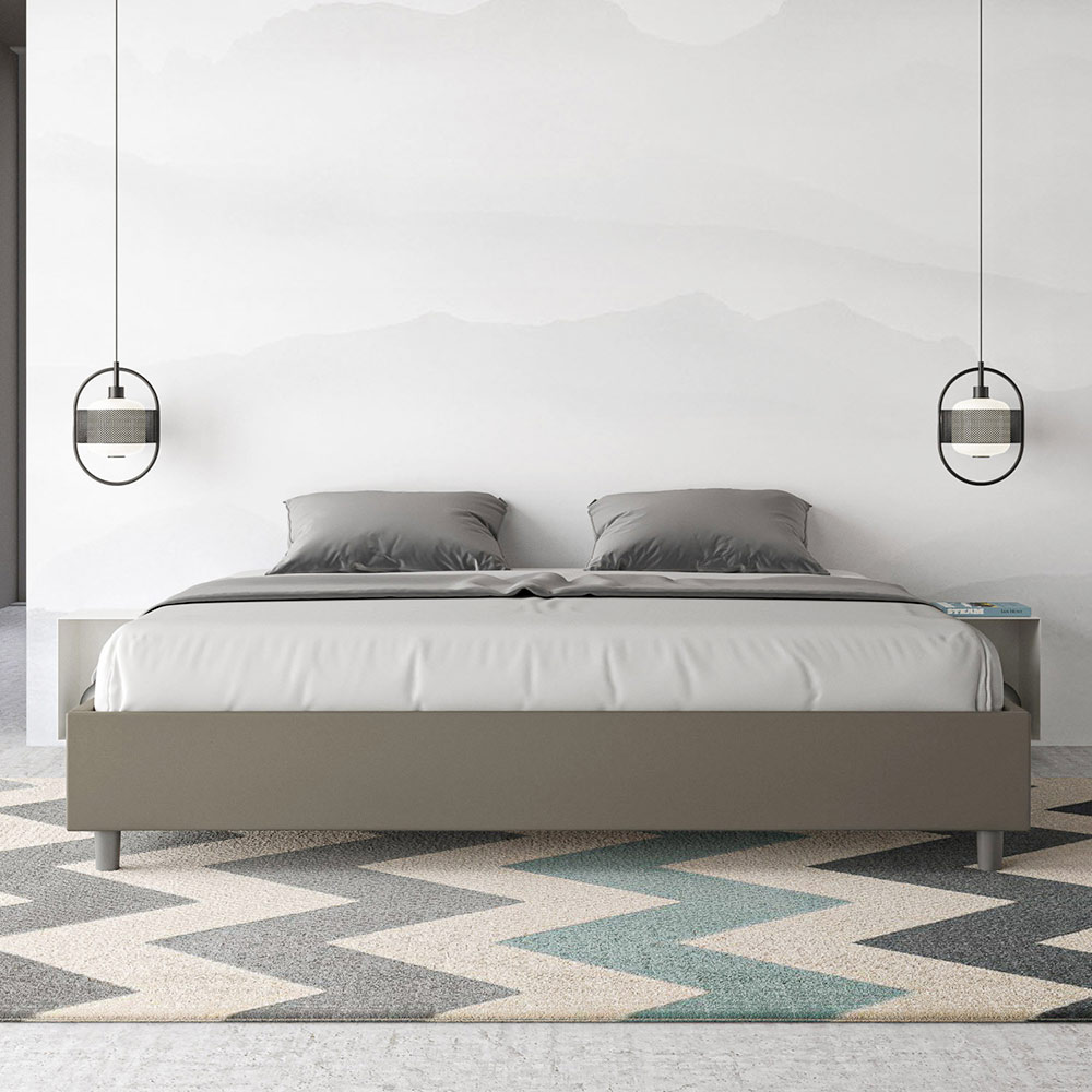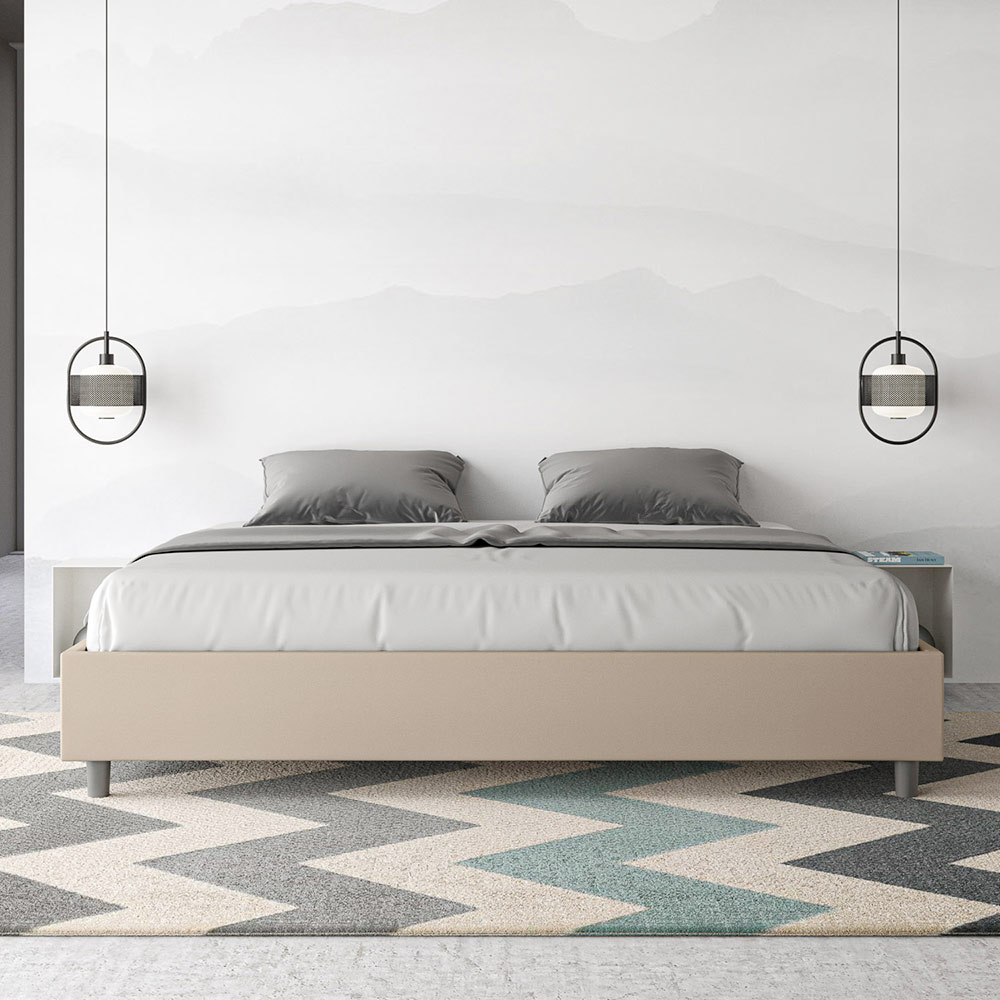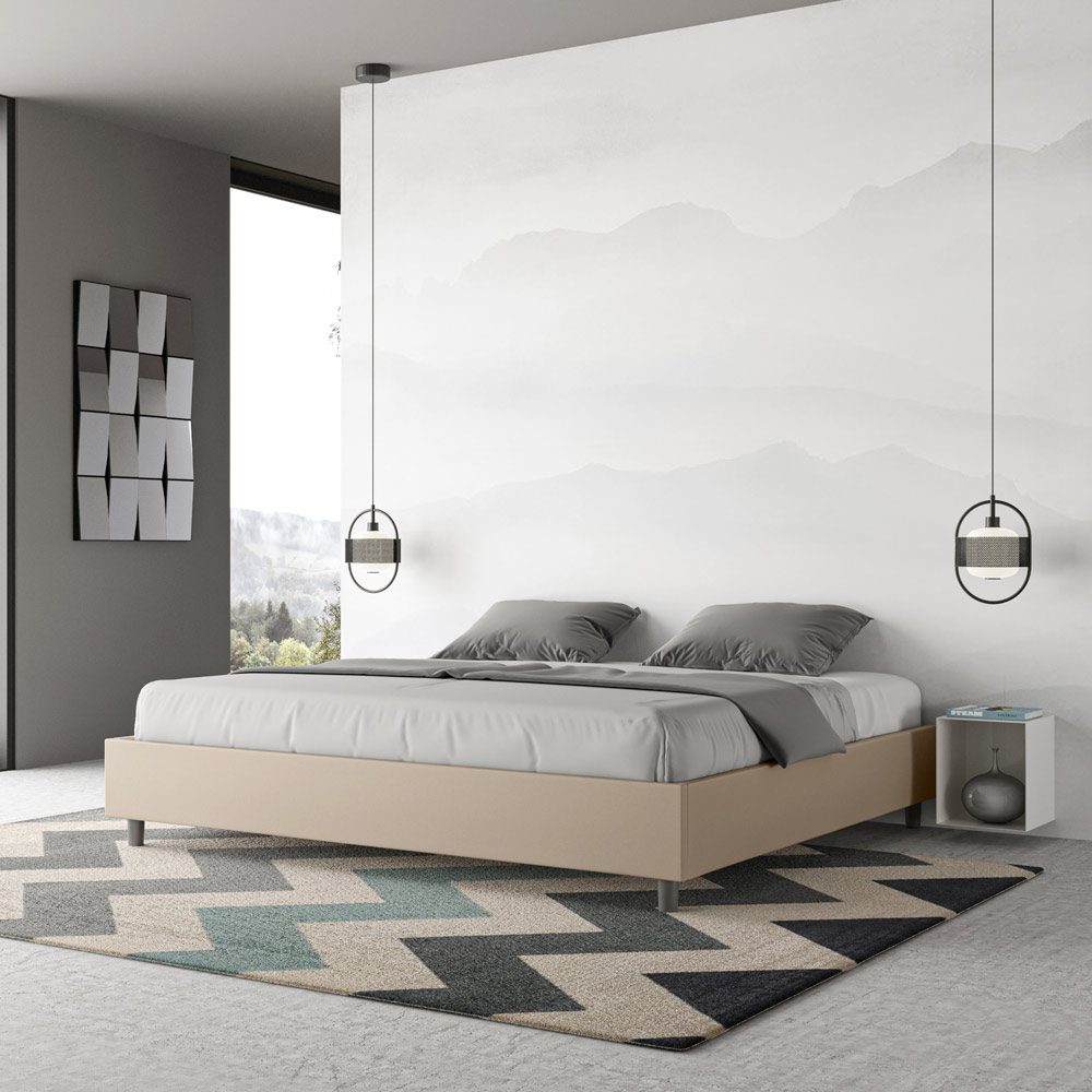 Postel velikosti King size 180x200 cm s čalouněním z melaminových panelů a potahem z imitace kůže , vyrobeno výhradně v Itálii. Tato postel velikosti king size vyniká svým čistým, minimalistickým designem . Díky své decentní estetice a všestrannosti se snadno začlení do jakéhokoli prostředí. Jedním z jejích charakteristických rysů je absence tradičního čela postele , díky čemuž je ideální pro umístění v jedinečných prostorách, například pod oknem, v podkroví nebo poblíž dekorativní stěny, aniž by bránila ve výhledu nebo dosáhla požadovaného efektu.