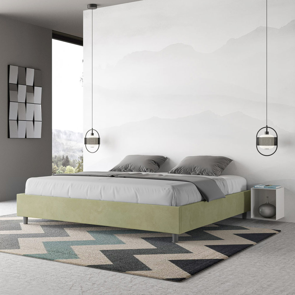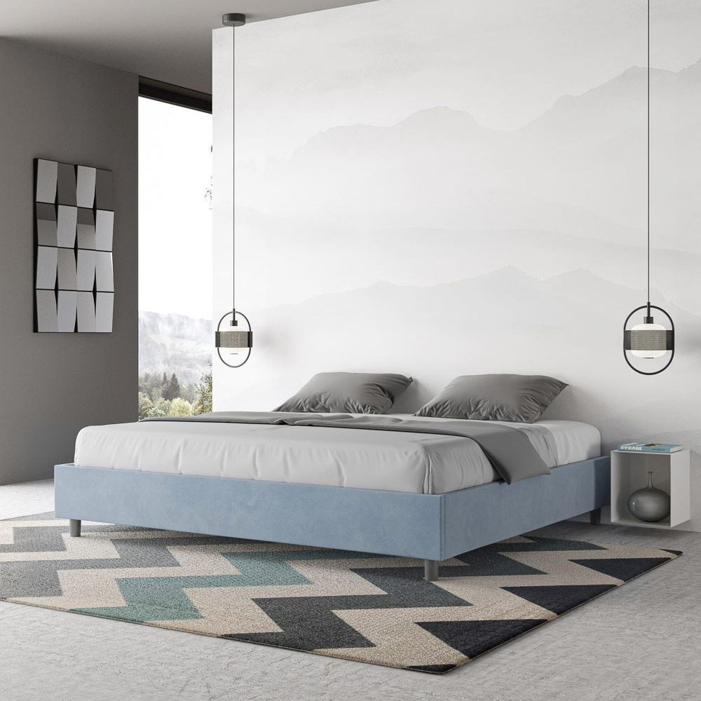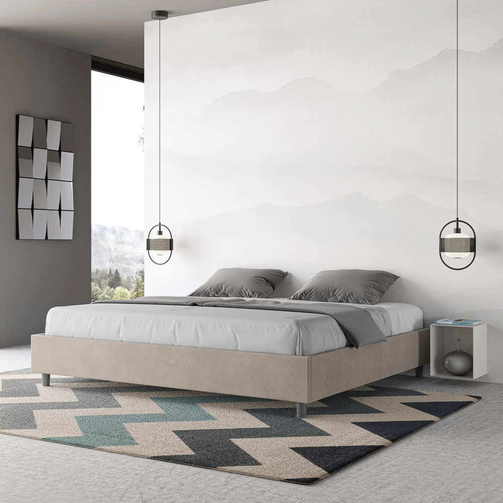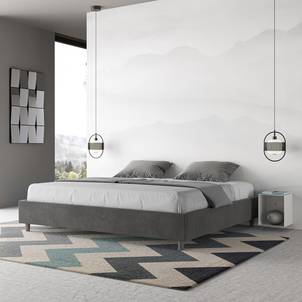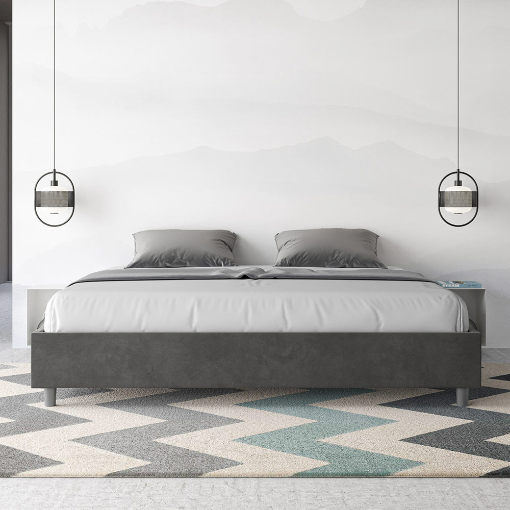 Postel velikosti King size 180x200 cm s čalouněním z melaminových panelů a potahem z mikrovlákna , kompletně vyrobeno v Itálii. Tato postel velikosti king size vyniká svým čistým, minimalistickým designem . Díky své decentní estetice a všestrannosti se snadno začlení do jakéhokoli prostředí. Jedním z jejích charakteristických rysů je absence tradičního čela postele , díky čemuž je ideální pro umístění v jedinečných prostorách, například pod oknem, v podkroví nebo poblíž dekorativní stěny, aniž by bránila ve výhledu nebo dosáhla požadovaného efektu.