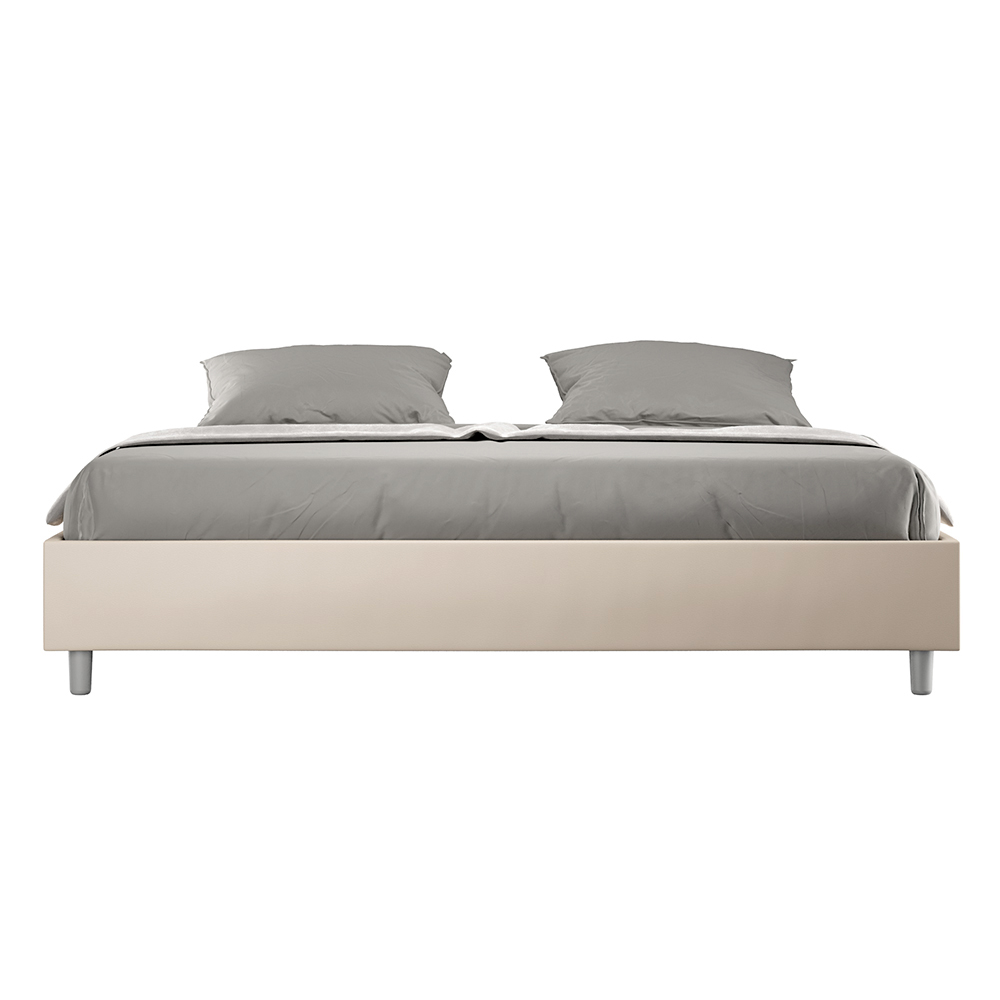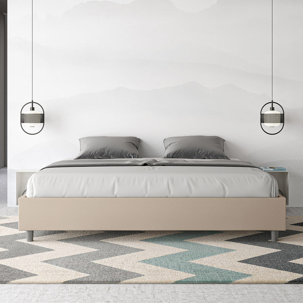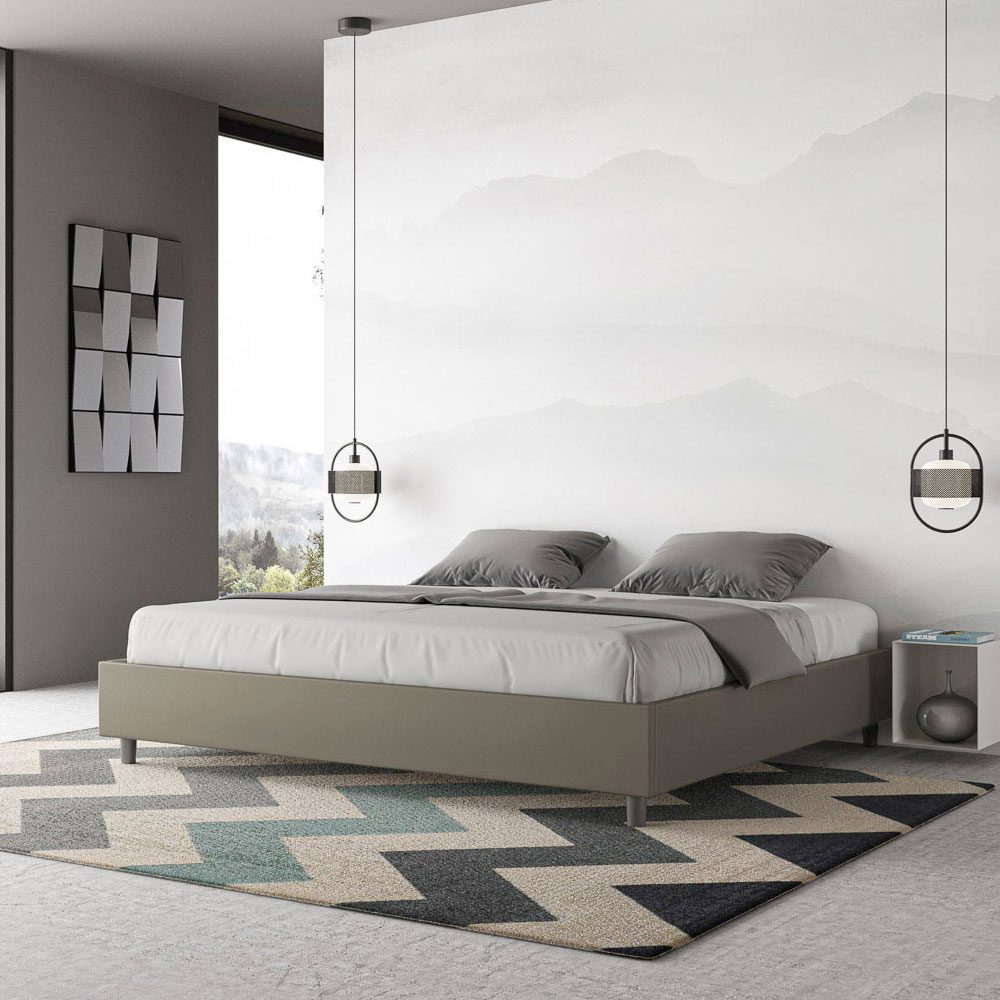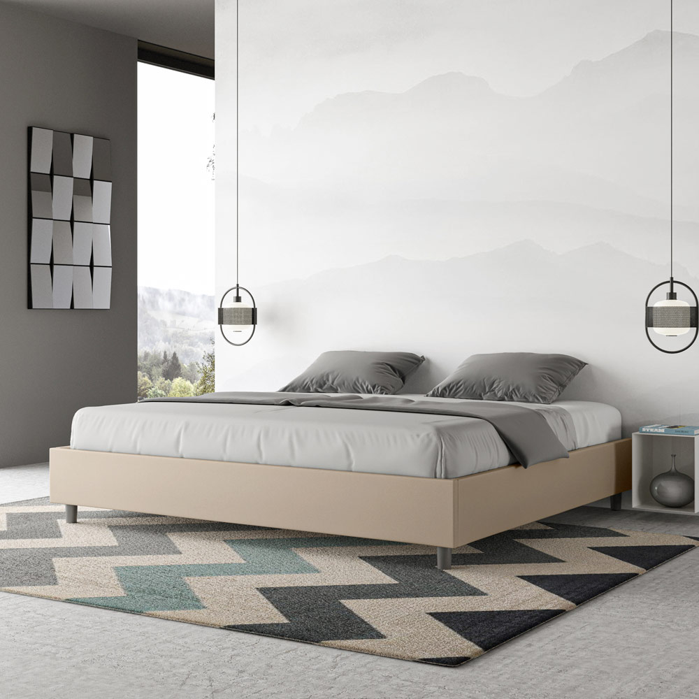 Velká postel velikosti Super King o rozměrech 200x200 cm, polstrovaná z melaminových panelů a potažená imitací kůže , kompletně vyrobená v Itálii. Tato postel velikosti super king size vyniká svým čistým, minimalistickým designem . Díky své decentní estetice a všestrannosti se snadno začlení do jakéhokoli prostředí. Jedním z jejích charakteristických rysů je absence tradičního čela postele , díky čemuž je ideální pro umístění v jedinečných prostorách, například pod oknem, v podkroví nebo poblíž dekorativní stěny, aniž by bránila ve výhledu nebo dosáhla požadovaného efektu.