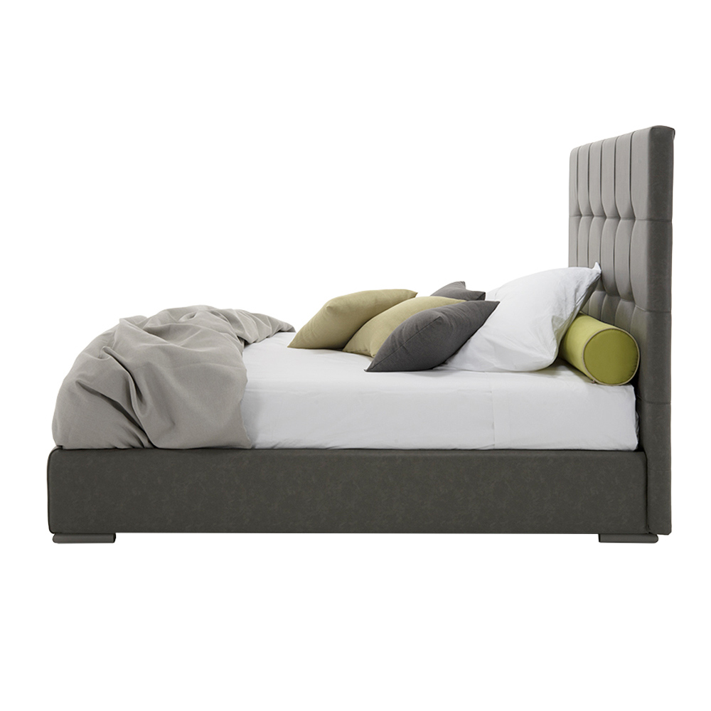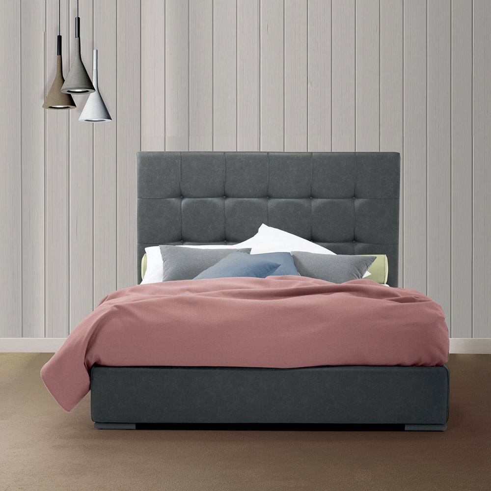 Vysoce kvalitní manželská postel s king size čelem a úložným boxem, ručně vyrobená v Itálii z látky nebo ekokůže.