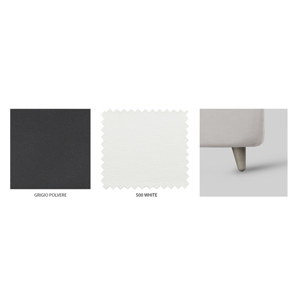 Dostupné povrchové úpravy:- Model nohou H 11: čelo postele v práškově šedé barvě, rám postele z bílé ekokůže a polypropylenové nohy v šedé barvě