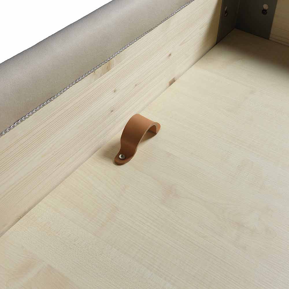 Struktura v pásech z jedlového dřeva s přírodní vnitřní úpravou v.29 cm, potažená polyuretanovou pěnou bez chlorfluoruhlovodíků dle norem UNI a lemovaná světlostálým velfoderem. Spodky konstrukce jsou z dřevěného aglomerátu se syntetickou vnitřní povrchovou úpravou s efektem jedle, ty jsou podepřeny PE a trubkovými profily. Lamelový podstavec s kovovou konstrukcí, zakřivený rám s profilem 50x37 mm lakovaný epoxidovými prášky. Normální ortopedická lamelová základna, zakřivené lamely z bukové překližky.