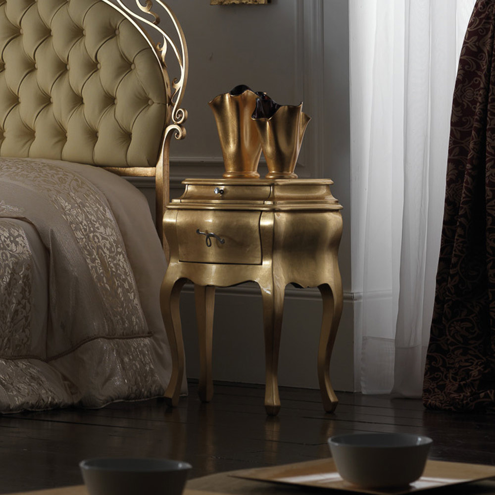 Dostupné povrchové úpravy:- meccata stříbrná listová postel, stříbrné listové noční stolky