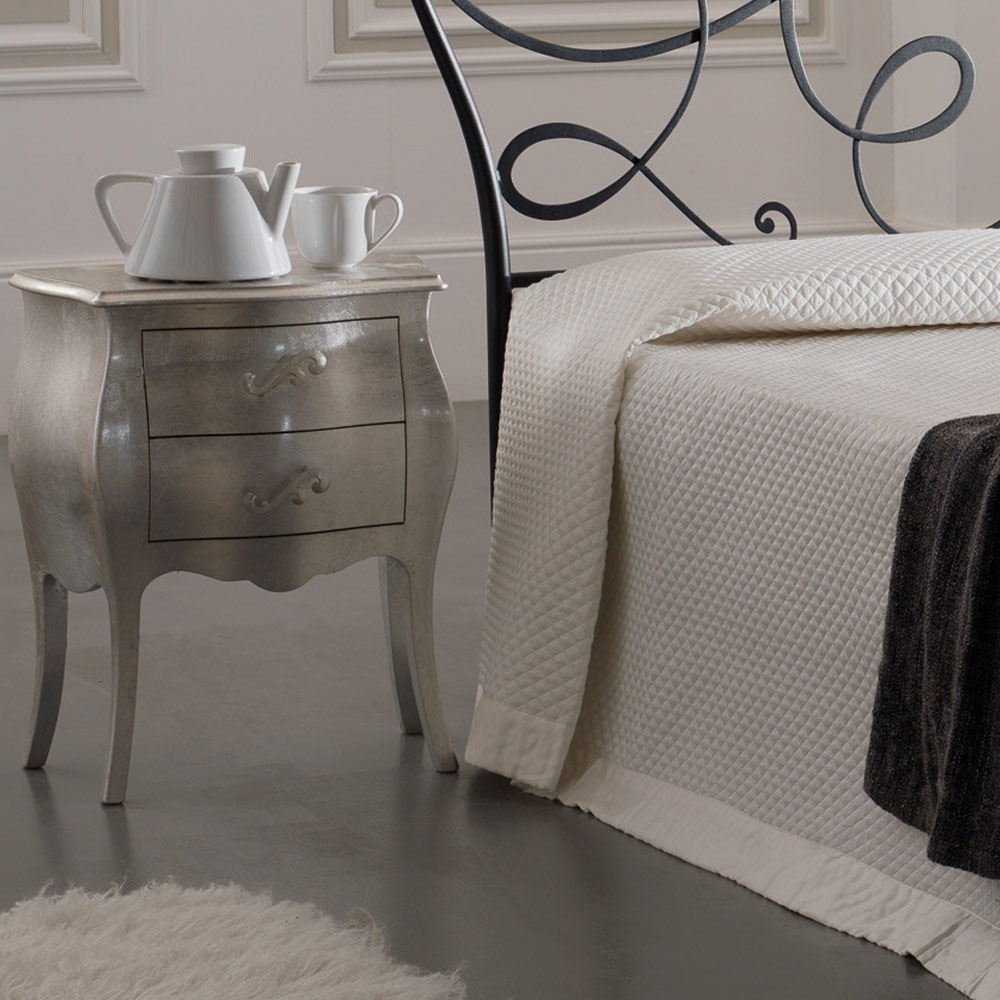 Dostupné povrchové úpravy:- zaprášená šedá postel, stříbrné listové noční stolky