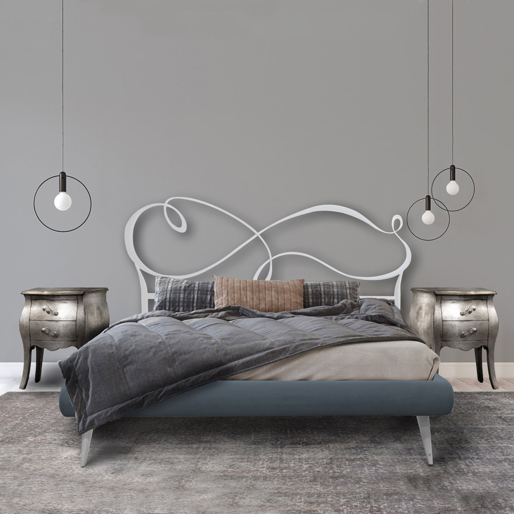 Manželská postel s železným čelem a 2 nočními stolky Made in Italy