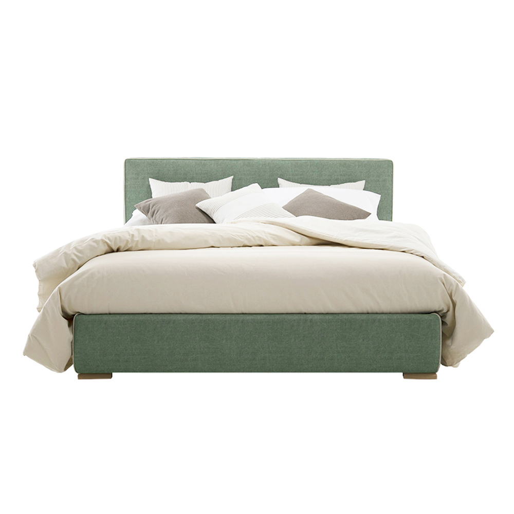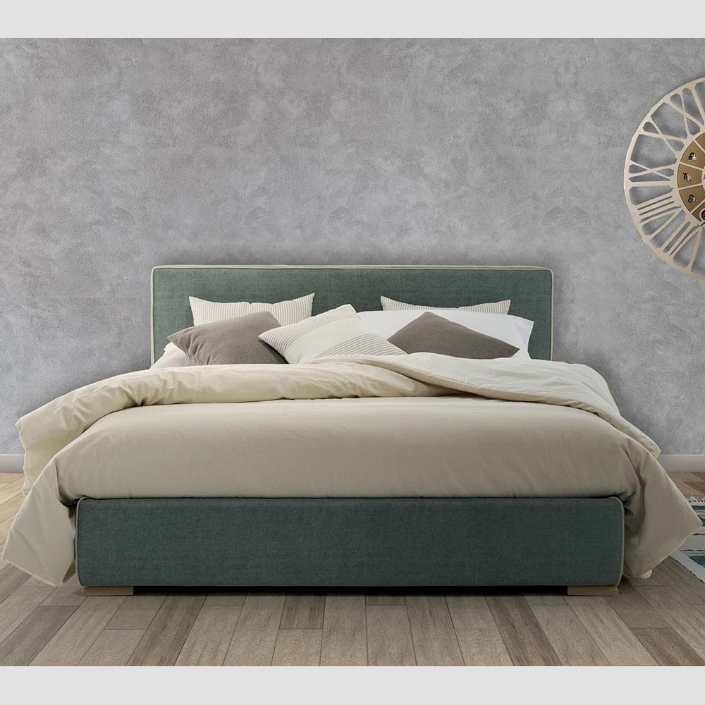 Luxusní manželská postel s úložným boxem, ručně vyrobená v Itálii z ekokůže nebo látky.