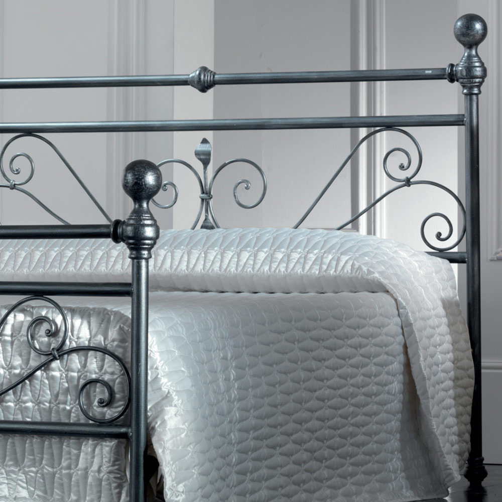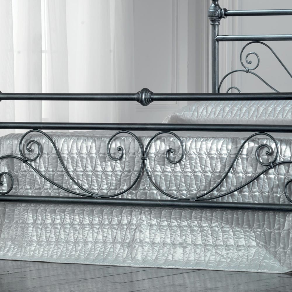 černo-stříbrné práškové úpravě. Tento prvek v klasickém a nadčasovém stylu vytváří přívětivou a hřejivou atmosféru v každém spacím prostoru, ve kterém je umístěn. Povrchové úpravy a linie se spojují a vytvářejí postel s vizuálním dopadem, kvalitou a funkčností.