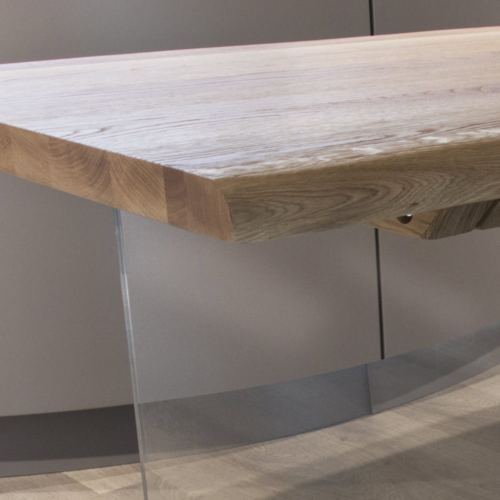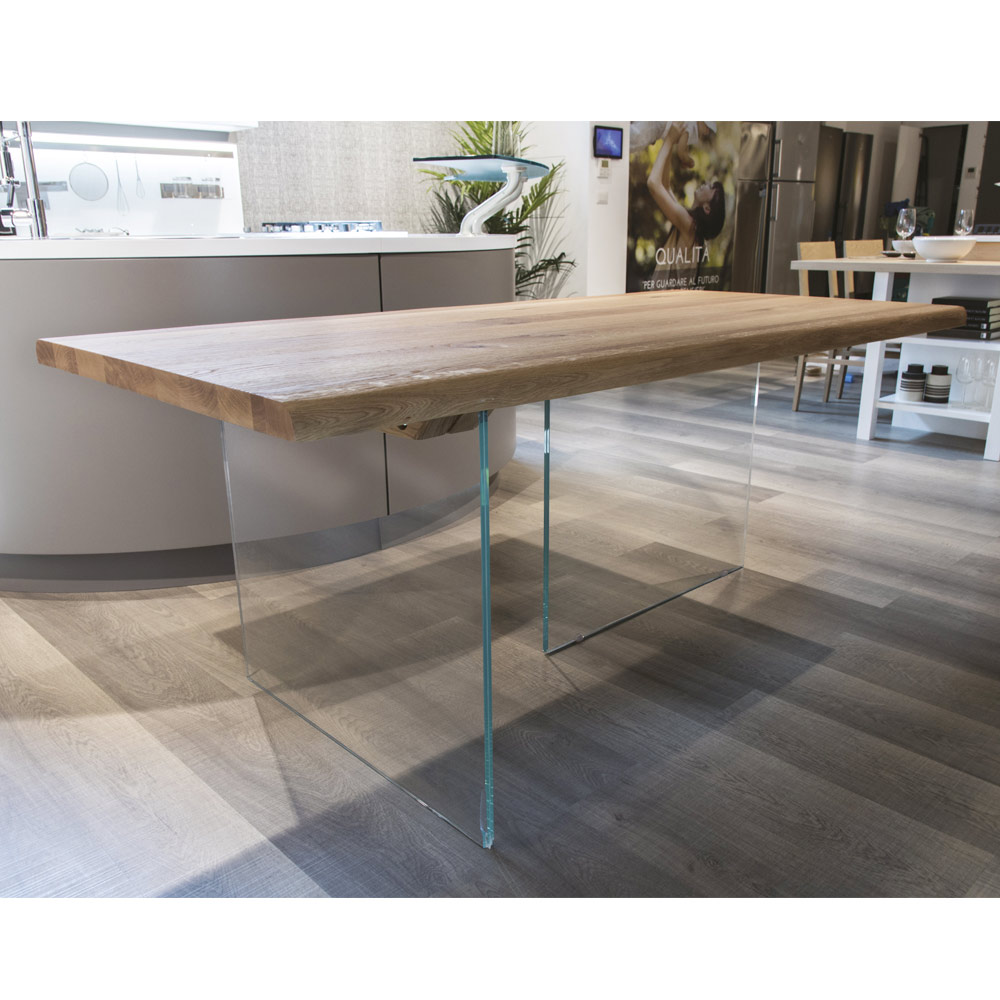 Dřevěný stůl pokovený vázaným dubem a křišťálovou podnoží Made in Italy.