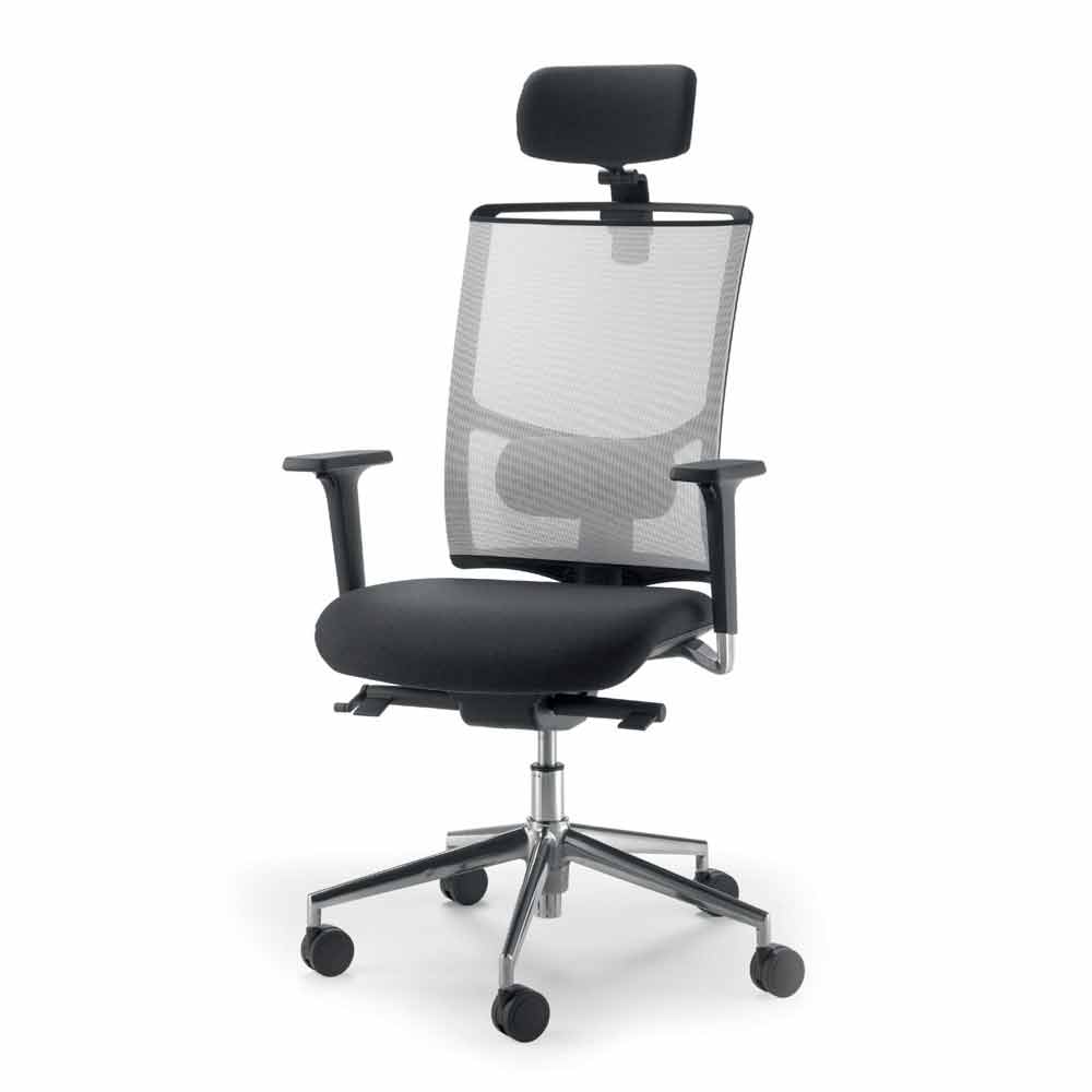 Mina semi-executive a operační křeslo s koženkovým sedákem a zády v moderním designu mesh; k dispozici v různých barevných kombinacích mezi sedadlem a zadním sedadlem.