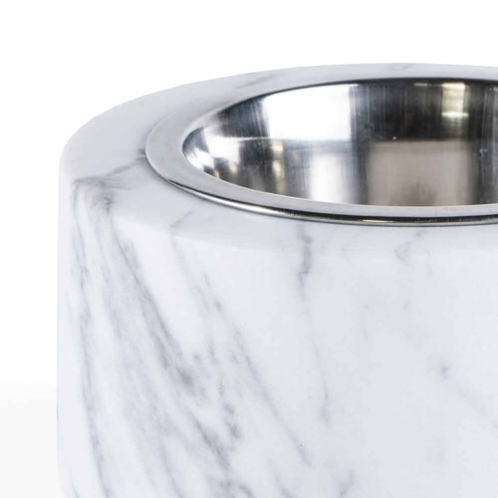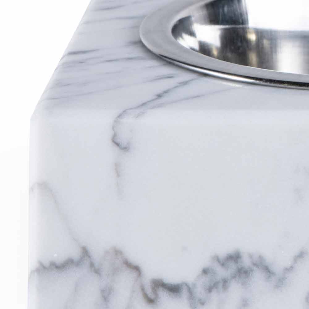 Vyrobená v Itálii designová mísa pro psy a kočky z bílého mramoru Carrara.