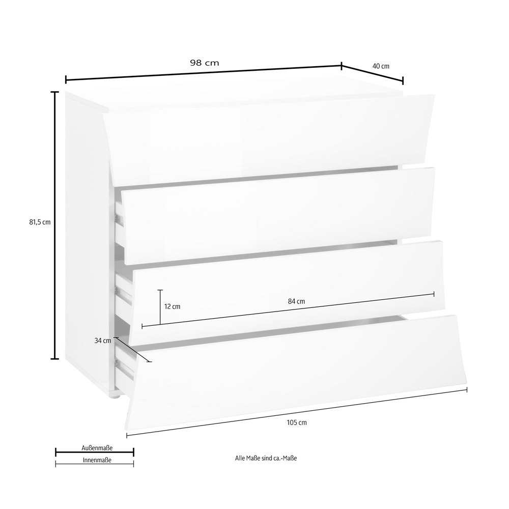 Oblouková bílá dřevěná komoda se 4 zásuvkami italské výroby.