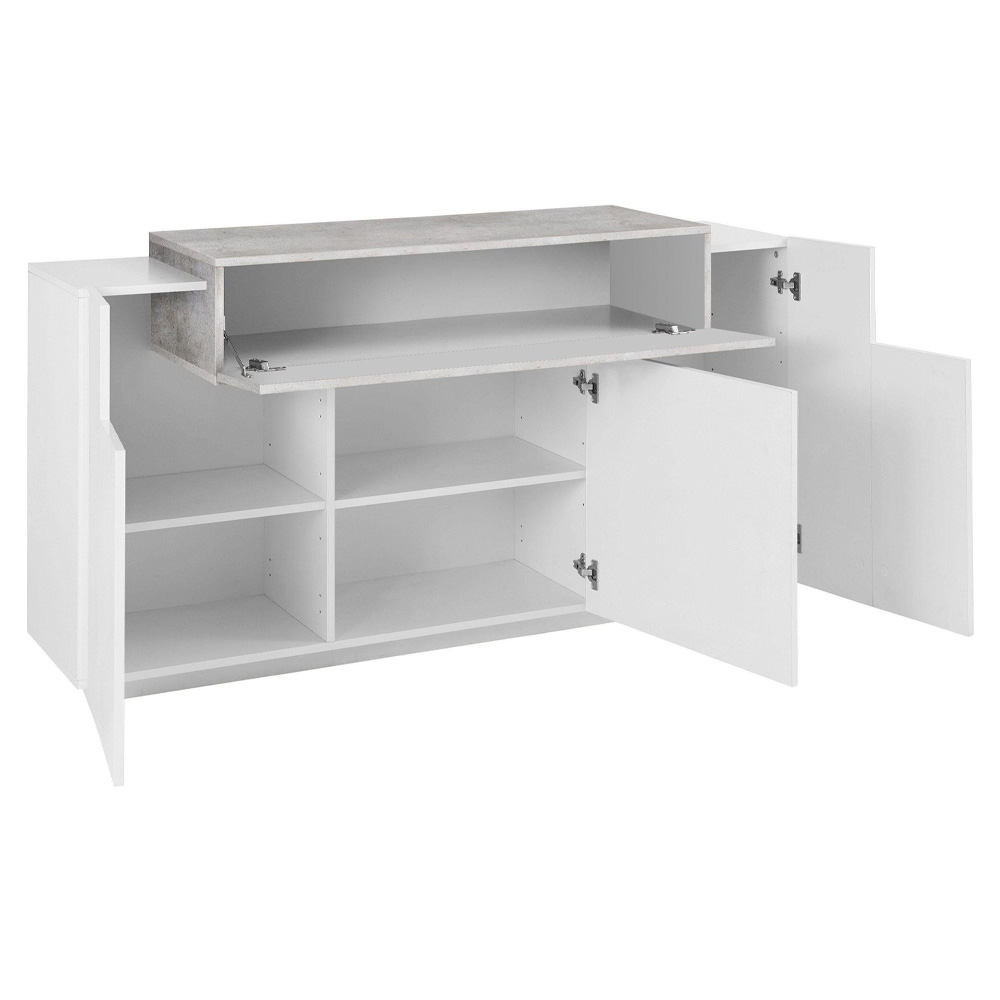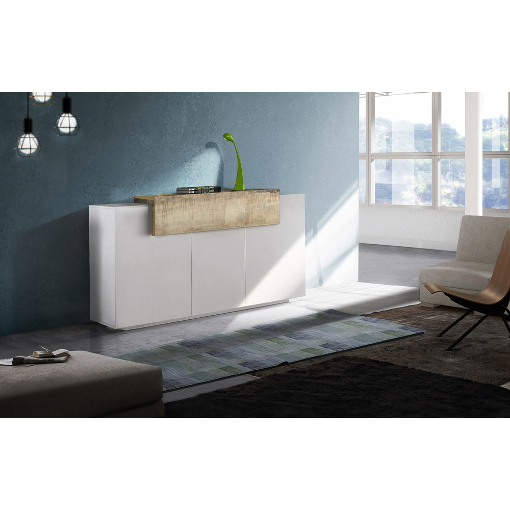 4 leštěné bílé a antracitové, betonové nebo javorové designové příborníky do obývacího pokoje vyrobené v Itálii.